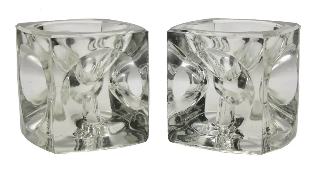 Glass By Peill & Putzler Pair Of Cube Candlestick 'Ice Cubes'