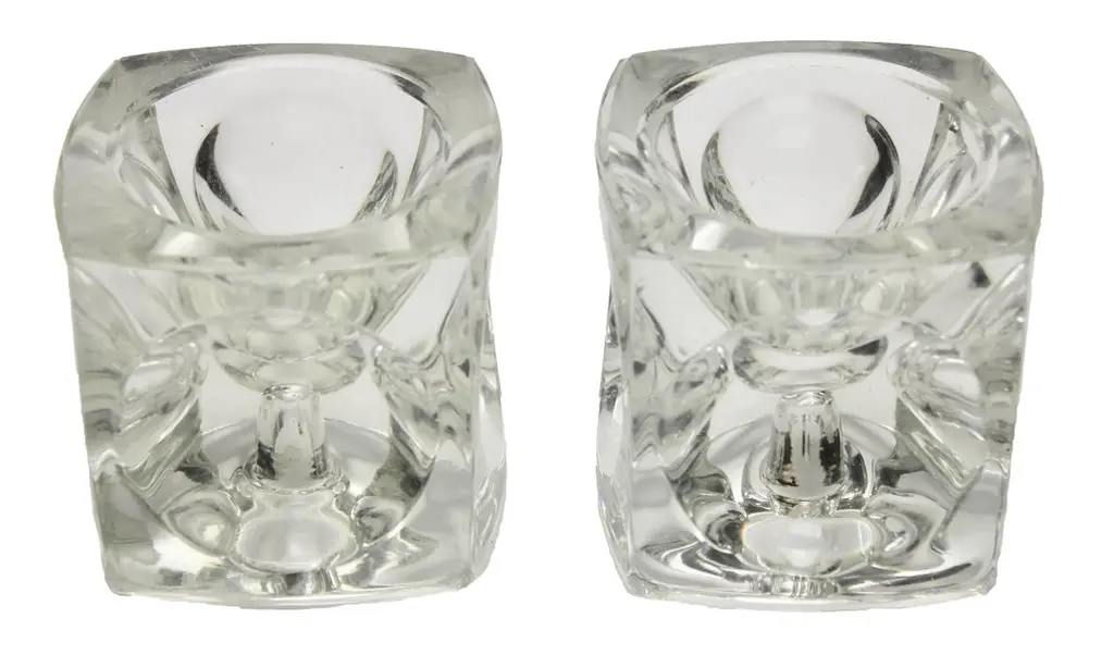 Pair of Peill & Putzler ice cube lampsPair of cube candlestick (ice cubes) in glass by Peill & Putzler.Period: 1960sStyle: MidcenturyQuantity: Two.