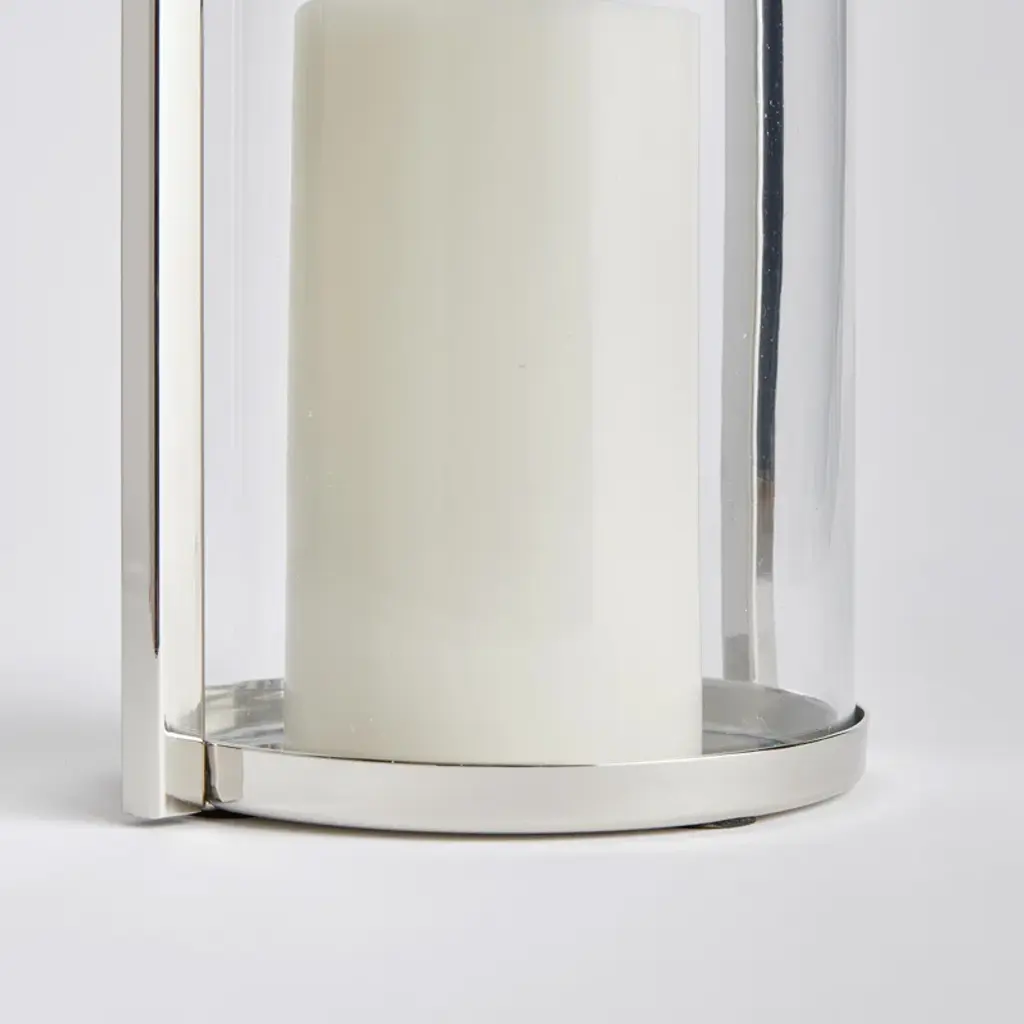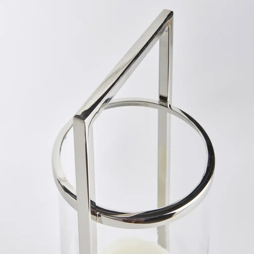 With a modern silhouette made of polished stainless steel, this tailored hurricane is at home in any setting. The square handle makes it easier to move around.