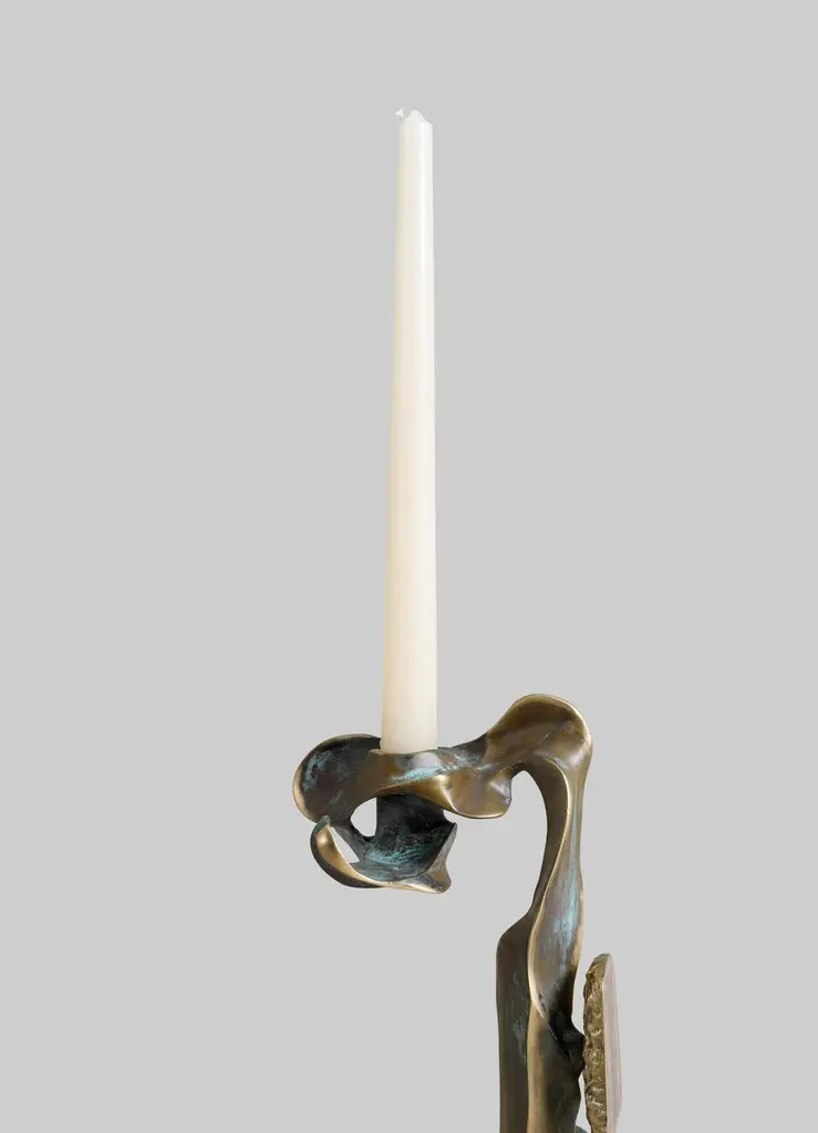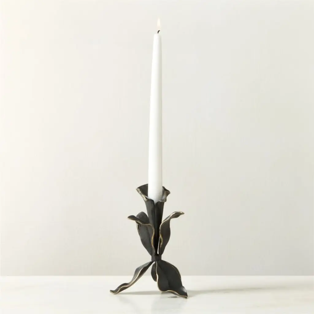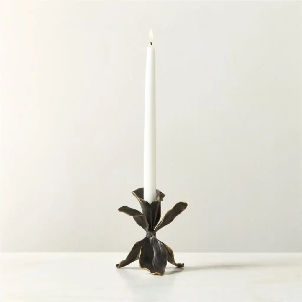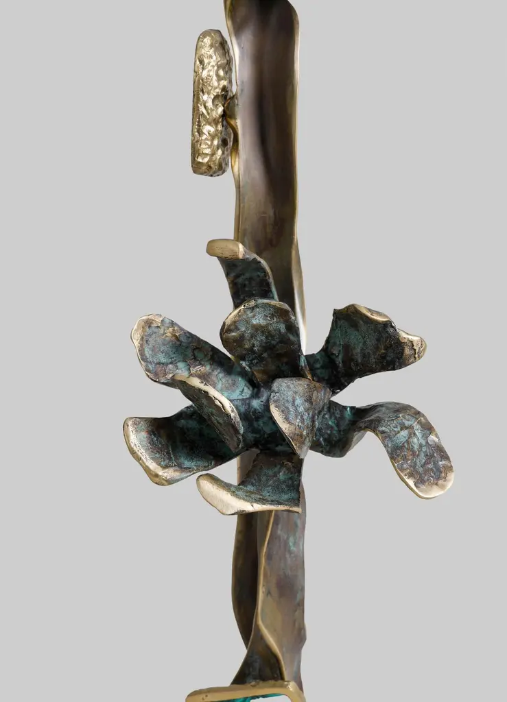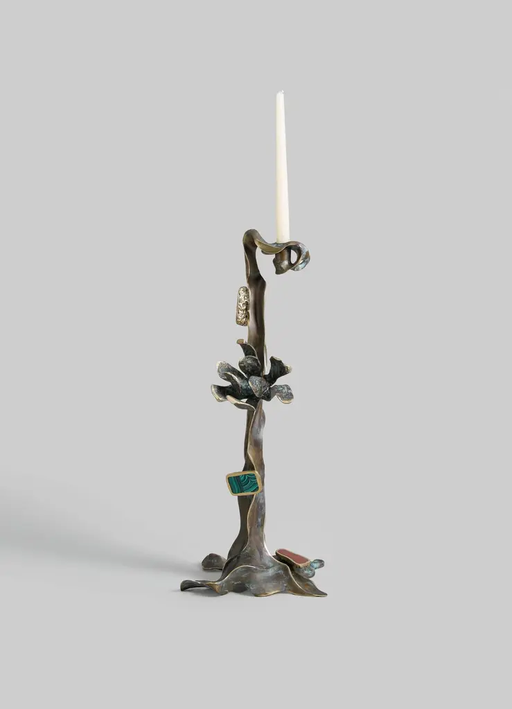 Glory Lily Candle Stand Tall In Brass & Precious Stone, Viya By Vikram Goyal