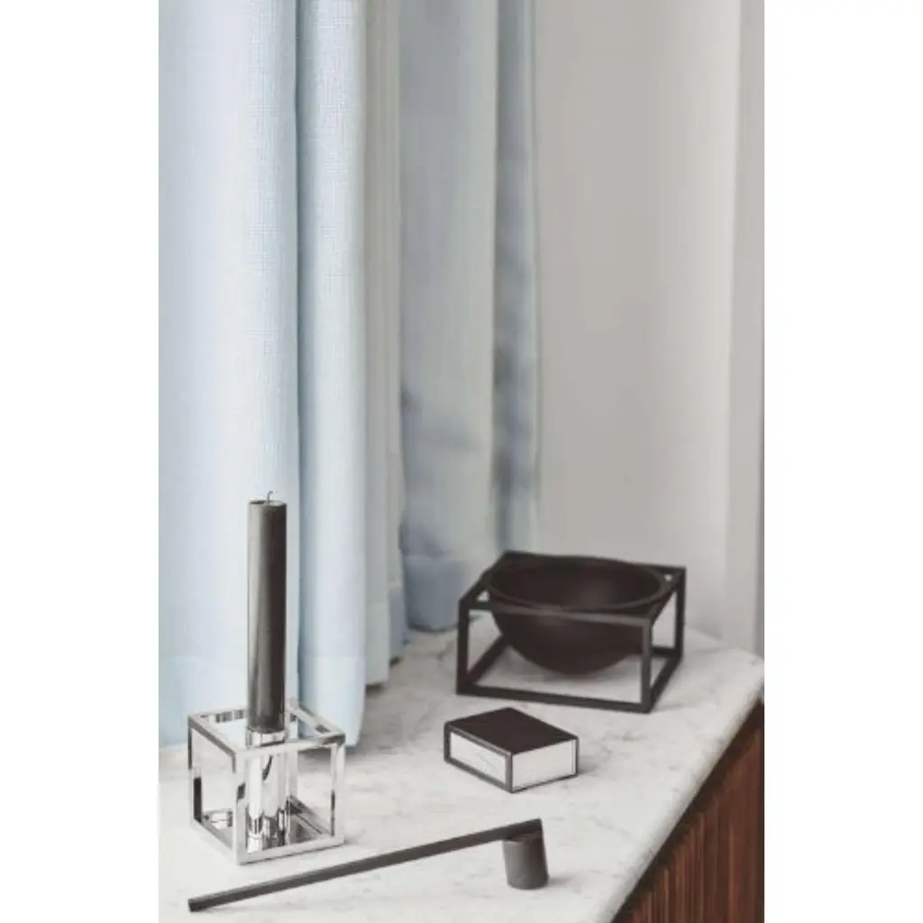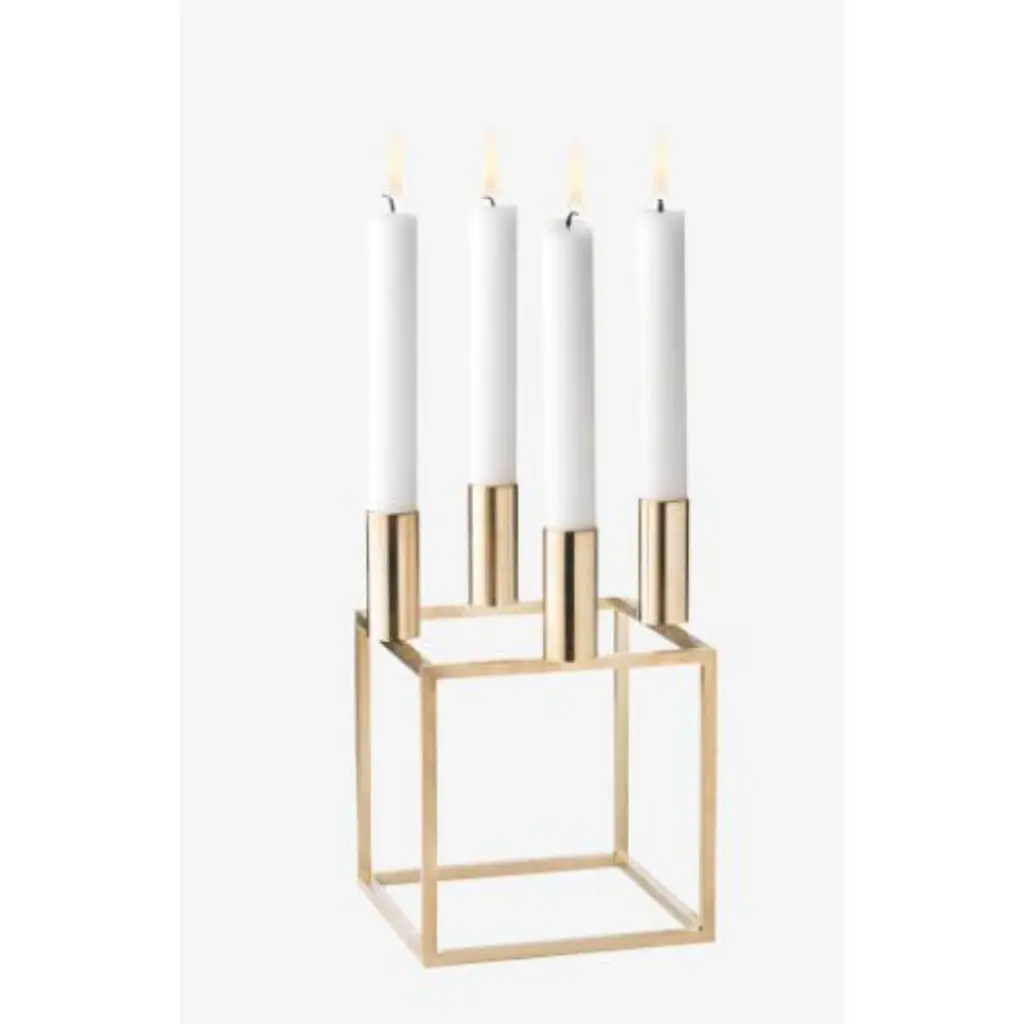Gold Plated Kubus 4 candle holder by LassenDimensions: D 14 x W 14 x H 20 cm Materials: Metal Also available in different dimensions. Weight: 1.50 KgA new small wonder has seen the light of day. Kubus Micro is a stylish, smaller version of the iconic Kubus candleholder and is also designed by Mogens Lassen. It is based on the exact same mathematical geometry as the very first Kubus Candleholder Mogens Lassen designed in 1962. Just very much smaller. Precisely half the size of Kubus 1.The black Kubus-shape frames the light beautifully and adds a mi¬nimalist expression to the table setting. Kubus Micro fits a single candle and is perfect for all kinds of festivities, where the table must be beautifully laid, and you want a very special atmosphere. The candleholder works alone in a beautiful still life or arrange several together for a greater effect.By Lassen is a Danish design brand focused on iconic designs created by Mogens and Flemming Lassen, founded by Lassens’ relatives in 2008. Brothers Mogens (1901-1987) and Flemming (1902-1984) Lassen are known as two of Denmark’s greatest architects and designers. Both were renowned pioneers of Danish functionalism and modernist architecture, honoured with numerous prestigious medals and awards. Headed by Mogens Lassen’s grandson Søren Lassen, by Lassen carries on the brothers’ design philosophy by manufacturing their iconic designs as well as products by other designers that complement the Lassen’s functionalist style. The company’s mission is to continue the tradition of timelessness, functionality and quality, and to introduce the Lassen’s design heritage to new generations.