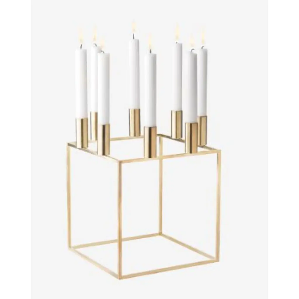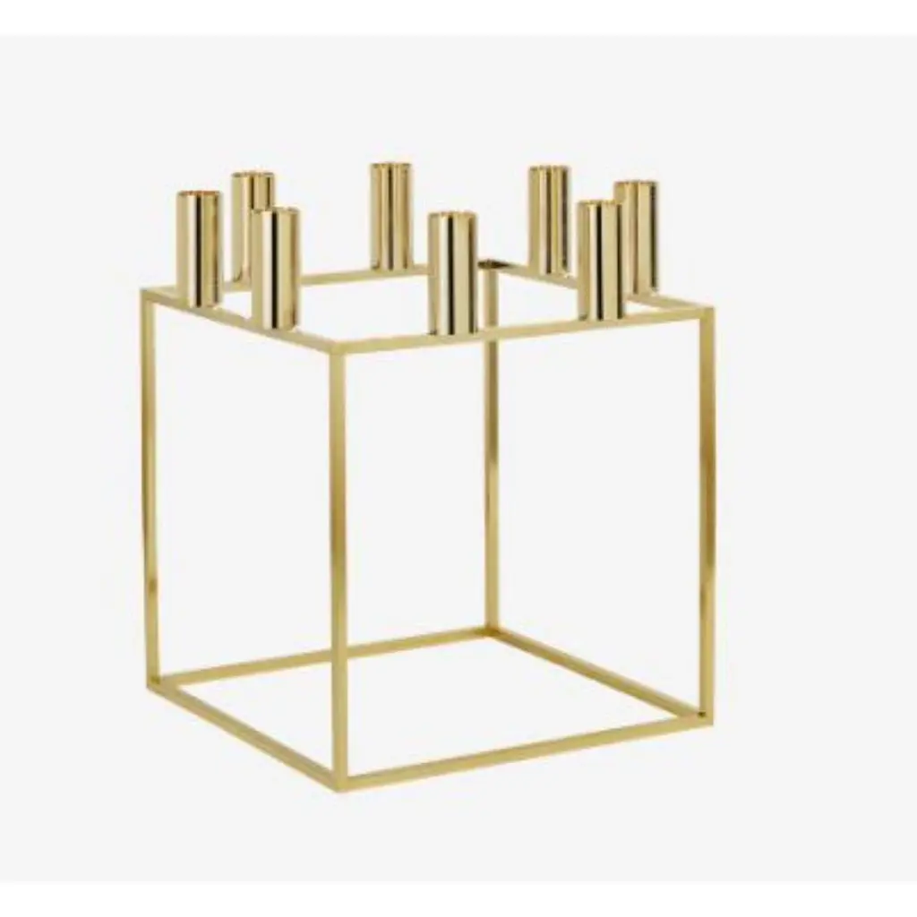 Gold plated kubus 8 candle holder by LassenDimensions: D 23 x W 23 x H 29 cm Materials: Metal Also available in different dimensions. Weight: 1.50 KgWith a sharp sense of contemporary Functionalist style, Mogens Lassen designed the iconic Kubus candleholder in 1962, a piece once reserved solely for family and close architect colleagues. The Kubus is still crafted in Denmark, and among architects and design connoisseurs it has acheived the status of a modern international design icon.By Lassen is a Danish design brand focused on iconic designs created by Mogens and Flemming Lassen, founded by Lassens’ relatives in 2008. Brothers Mogens (1901-1987) and Flemming (1902-1984) Lassen are known as two of Denmark’s greatest architects and designers. Both were renowned pioneers of Danish functionalism and modernist architecture, honoured with numerous prestigious medals and awards. Headed by Mogens Lassen’s grandson Søren Lassen, By Lassen carries on the brothers’ design philosophy by manufacturing their iconic designs as well as products by other designers that complement the Lassen’s functionalist style. The company’s mission is to continue the tradition of timelessness, functionality and quality, and to introduce the Lassen’s design heritage to new generations.