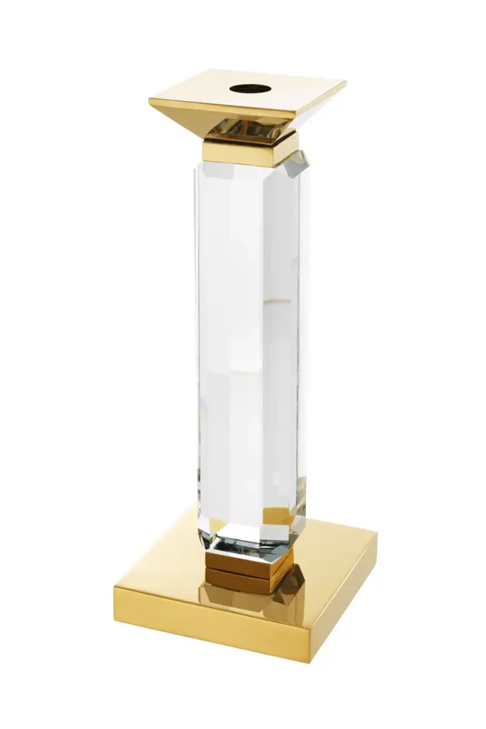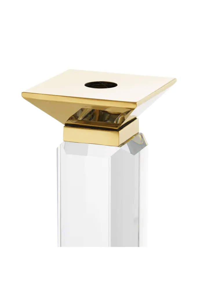 Dress up your console or dining table with the chic set of 3 Livia Candle Holders. Made of crystal glass and metal with a gold finish, these sophisticated candle holders will be genuine eye-catchers in your interior.
