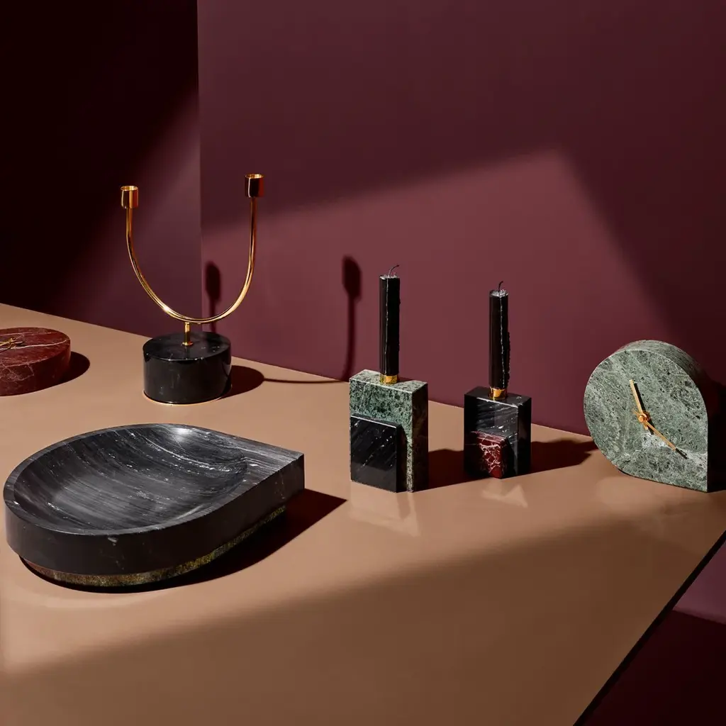 With a solid marble base and exquisite brass or black details, the Grasil candleholders provide a unique look and overwhelming elegance. The natural variations in marble are a wonderful base for home interiors and autumn evenings will be beautifully lit with these candleholders.