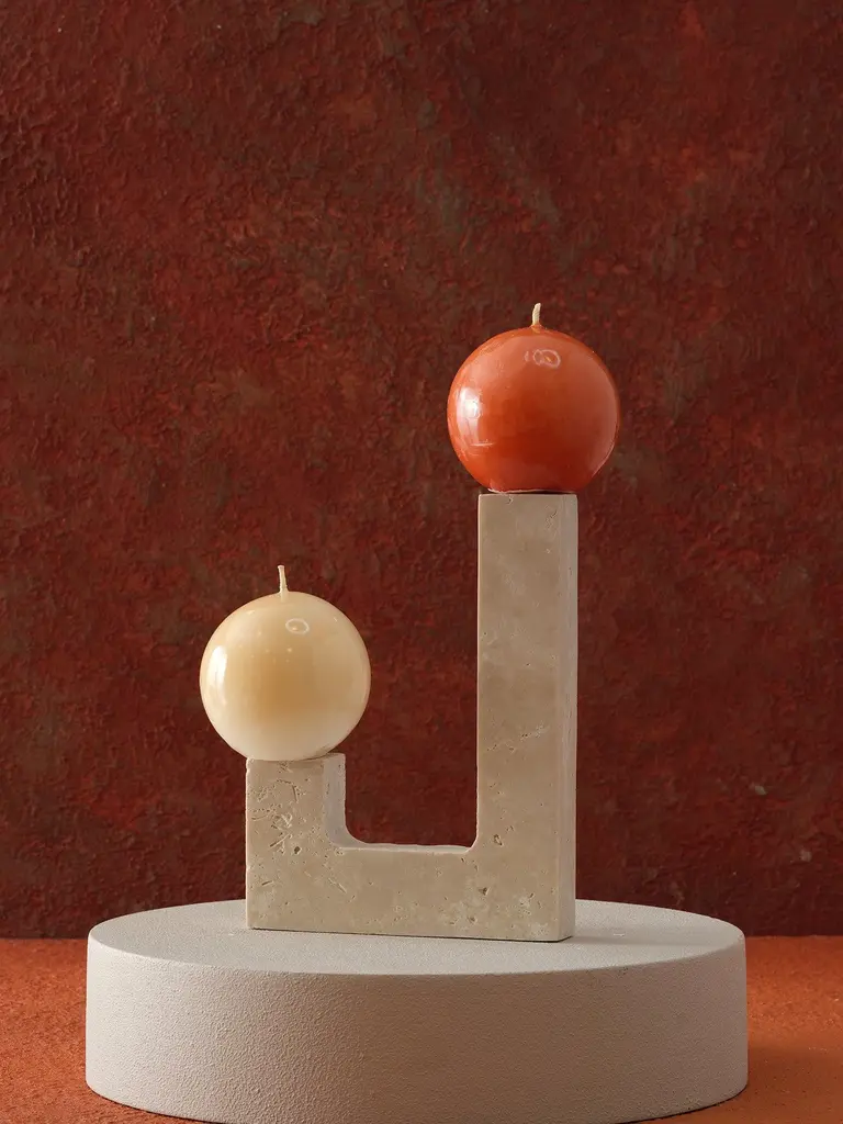 Handmade Travertine L-Shaped Candle Holder – Modern Sculptural Stone Accent
