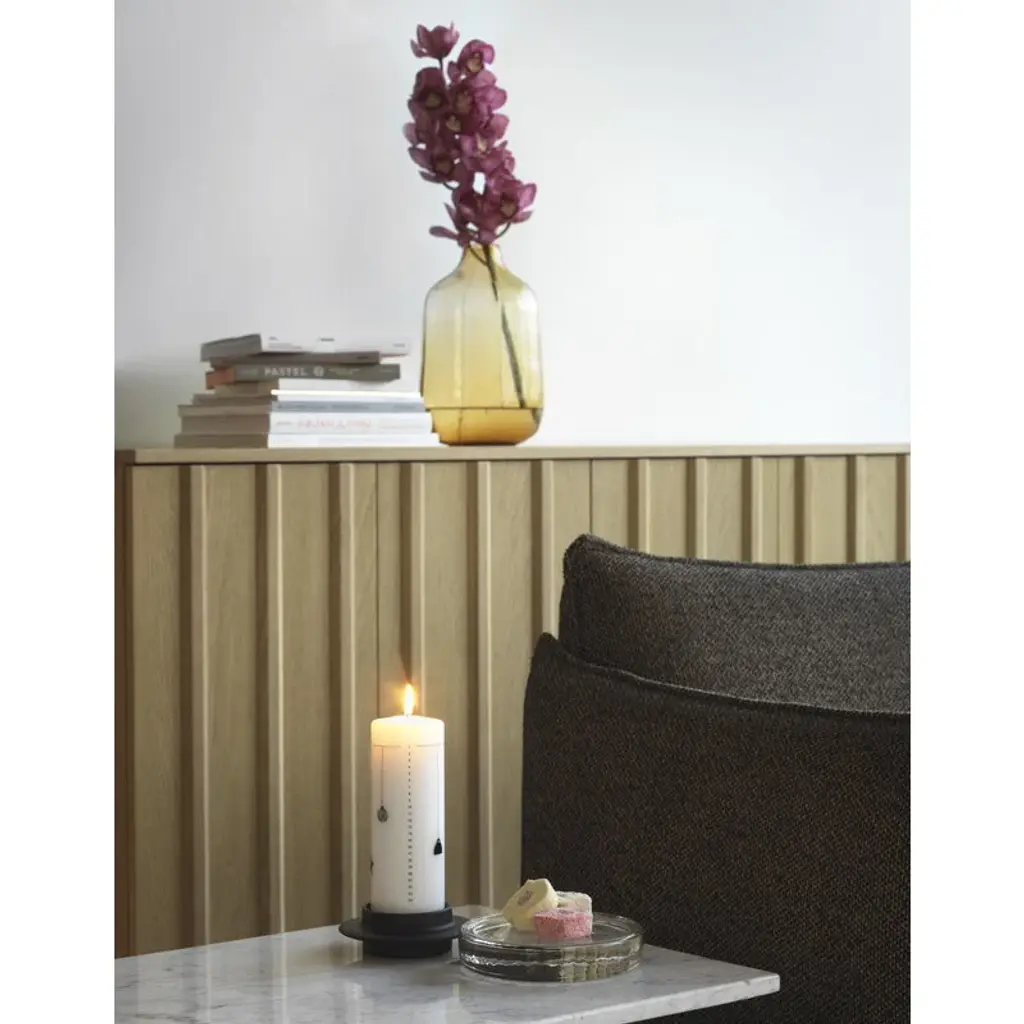 Normann Copenhagen's Heima Block candle holder is an homage to Nordic traditions and industrial craftsmanship. The candle holder's rustic surface and round shape create a nice contrast to the candle placed in it – and catch the eye even without a candle.