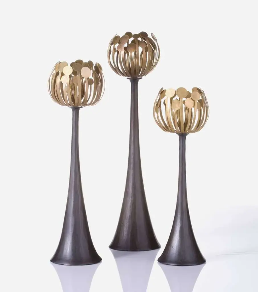 Herve Van Der Straeten, "Pistil" Large Bronze Candlestick, France, 2011