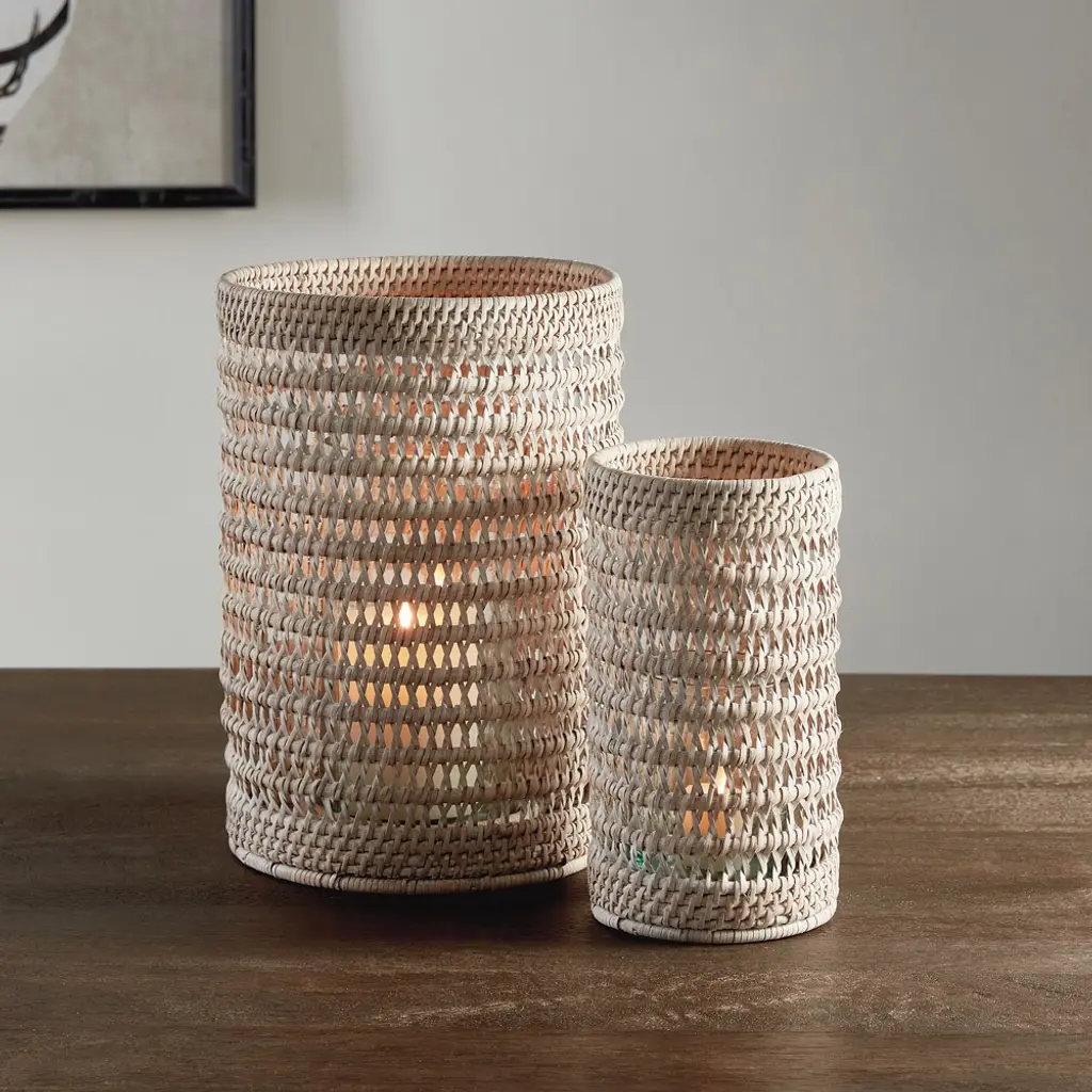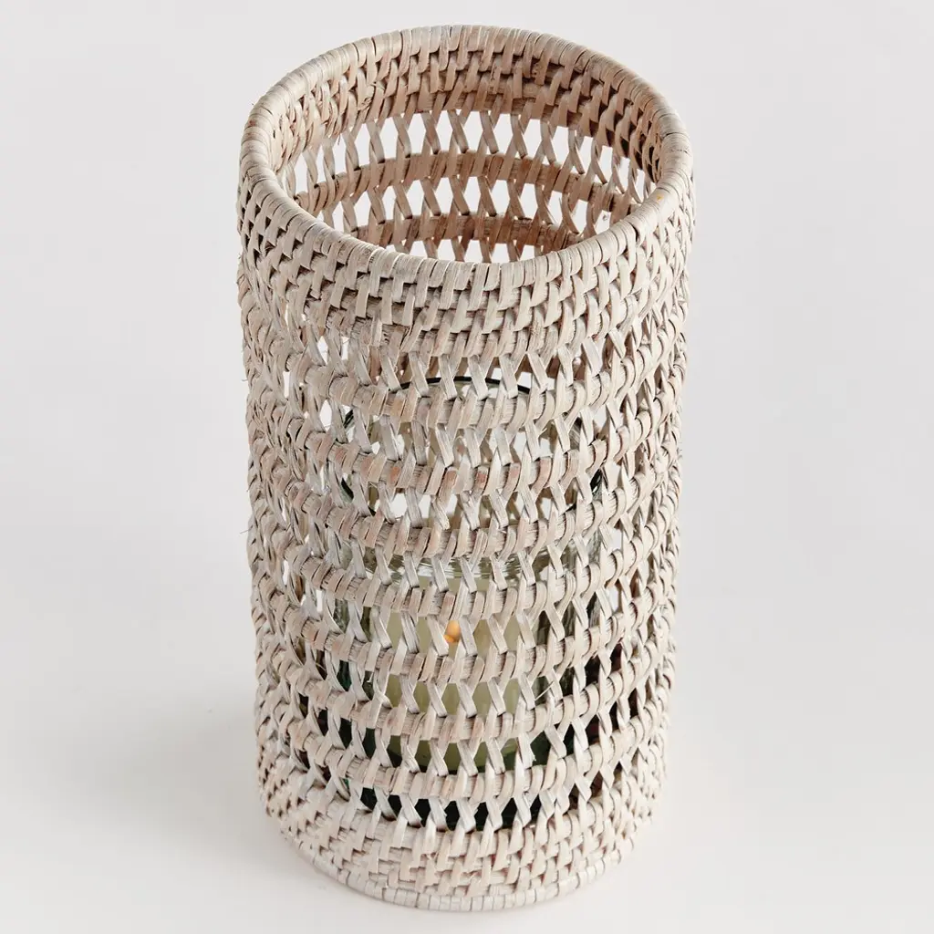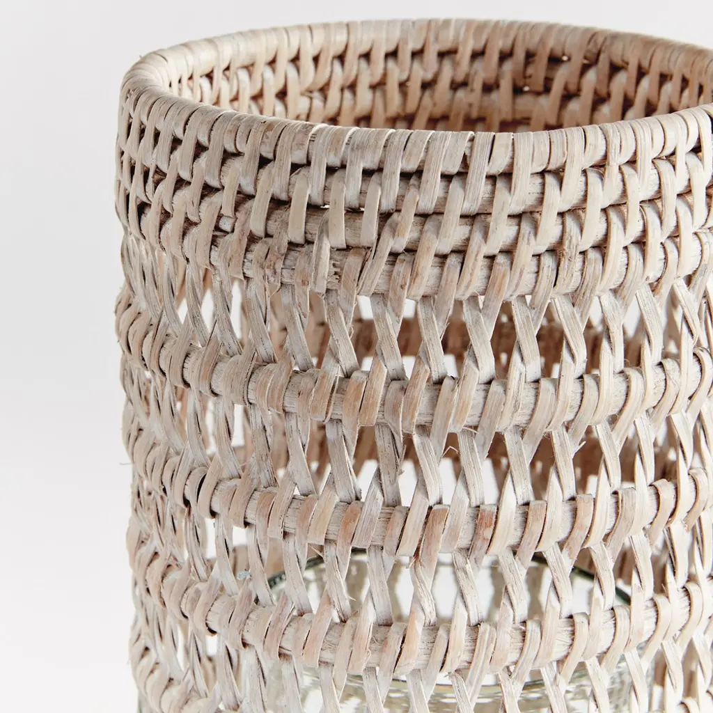 Hollis Coastal Whitewash Rattan Hurricane Candleholder - Small