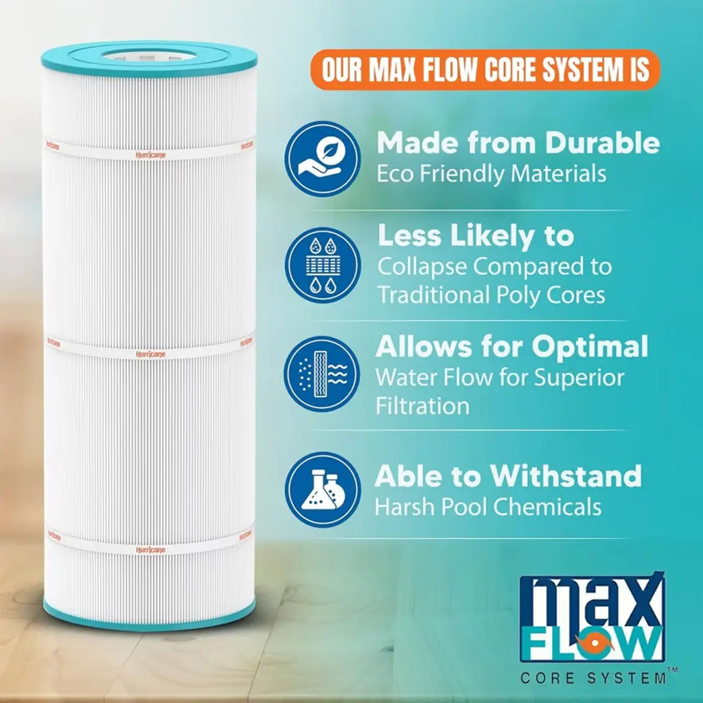 Dive into pristine waters with the Hurricane Elite Aseptic Cartridge Filters, where unparalleled cleanliness awaits. Crafted with meticulous precision, these filters guarantee seamless compatibility with Unicel: C-6430RA, PWK30-M, Filbur: FC-3915-M, and other compatible models. With dimensions measuring 10.5 inches in length, an outer diameter of 5.88 inches, a top hole of 1.94 inches, and a bottom hole of 1.94 inches, achieving an ideal fit is effortless. Measure your current filters for a flawless match. Experience a new level of filtration prowess with these spa essentials' advanced point bond filter media, elevating filtration effectiveness beyond traditional non-woven materials. From biomass to dirt, debris, hair, leaves, and even critters, these pool filters are formidable barriers, leaving your pool or spa immaculate and inviting. Esteemed by both industry professionals and homeowners, these spa accessories are meticulously engineered for durability, ensuring prolonged service life and effortless upkeep. Bid farewell to the inconvenience of frequent replacements and welcome substantial savings on filters, all while minimizing wear and tear on your pump. Discover the exceptional cleaning prowess of the Hurricane Elite Aseptic Cartridge Filters, your ultimate solution for pristine waters and unparalleled excellence.