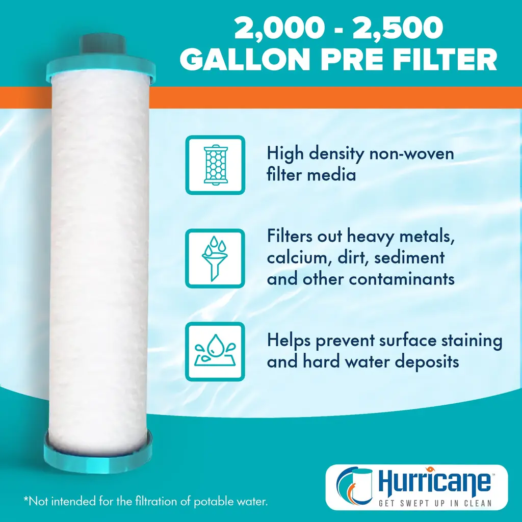 Dive into the realm of pristine waters with the esteemed guardian, the Hurricane Garden Hose Pre Filter, where unparalleled cleanliness awaits. Crafted with precision and engineered for excellence, the HFPRE-2000-01 seamlessly integrates into your standard garden hose, unleashing a torrent of protection for spas, hot tubs, pools, aquariums, ponds, and beyond. Bid farewell to the ominous threats of heavy metals, calcium, dirt, sediment, and other contaminants, as this filter diligently purifies each droplet before it embarks on its aquatic voyage. Compatibility spanning revered models like PPS2100 and Filbur FC-3128 ensures a universal shield against impurities. Attach the Hurricane HFPRE-2000-01 to your trusty garden hose, and watch as it transforms into a conduit of purity, safeguarding your aquatic havens from the ravages of pollution. Designed to pre-filter an impressive 2000-2500 gallons of water, this cartridge is primed for routine top-offs and total fills. Whether replenishing a tranquil pond or nurturing a bubbling hot tub oasis, the capacity and efficiency make this spa sediment filter an indispensable ally in the battle for aquatic sanctity. Discover the exceptional cleaning prowess of the Hurricane Garden Hose Pre Filter, your ultimate solution for pristine waters and unparalleled excellence. Safeguard your spas, hot tubs, pools, aquariums, and ponds with this pre filter Compatible with PPS2100, Filbur FC-3128, and other models for seamless integration Simply attach it to your standard garden hose for immediate filtration action Filters out heavy metals, calcium, dirt, sediment, and other contaminants, maintaining water purity Helps maintain pristine surfaces by eliminating the risk of unsightly stains Designed to pre-filter 2000-2500 gallons of water, ideal for top-offs or complete fills Suitable for pools, hot tubs, spas, aquariums, outdoor ponds, and gardens; Specifically designed for non-drinking water applications Color: White/Blue Dimensions (L x W x H): 10 x 2.75 x 2.75 inches Weight: 0.5 pounds