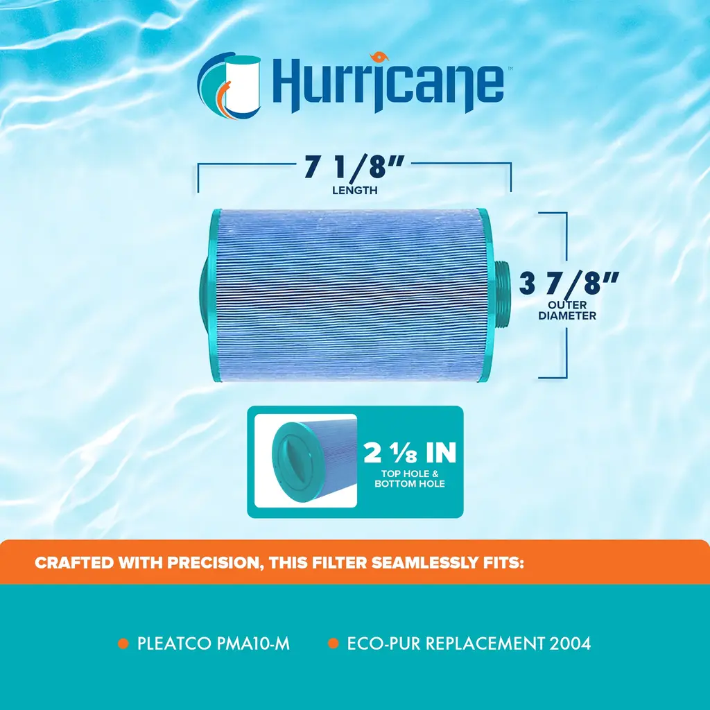 Dive into pristine waters with the Hurricane Elite Aseptic Cartridge Filter, where unparalleled cleanliness awaits. Crafted with meticulous precision, this filter guarantees seamless compatibility with PMA10-M, Eco-Pur Replacement 2004, and other compatible models. With dimensions measuring 7.13 inches in length, an outer diameter of 3.88 inches, a top hole handle, and a Bottom hole of 2.13 inches, achieving an ideal fit for this filter cartridge is effortless, measure your current filter for a flawless match. Experience a new level of filtration prowess with the advanced point bond filter media of this spa essential, elevating filtration effectiveness beyond traditional non-woven materials. From biomass to dirt, debris, hair, leaves, and even critters, this pool filter is a formidable barrier, leaving your pool or spa immaculate and inviting. Esteemed by both industry professionals and homeowners, this spa accessory is meticulously engineered for durability, ensuring prolonged service life and effortless upkeep. Bid farewell to the inconvenience of frequent replacements and welcome substantial savings on filters, all while minimizing wear and tear on your pump. Discover the exceptional cleaning prowess of the Hurricane Elite Aseptic Cartridge Filter, your ultimate solution for pristine waters and unparalleled excellence. HF-3MAS-02M Elite Aseptic Cartridge Filter to experience a whole new level of cleanliness, ideal for keeping water pristine and enjoyable Crafted with precision, this filter is seamlessly compatible with PMA10-M, Eco-Pur Replacement 2004 Advanced point bond filter media traps everything from biomass to dirt, debris, hair, leaves, and critters, leaving your pool or spa immaculate Engineered to last longer and are incredibly easy to clean, so you can say goodbye to frequent replacements and hello to significant savings on filters, along with reduced wear and tear on your pump Delight in the advantages of superior pleat material, end caps, and max flow cores for unmatched quality Color: Elite Aseptic Dimensions (L x W x H): 7.13 x 3.88 x 3.88 inches Weight: 1.60 pounds