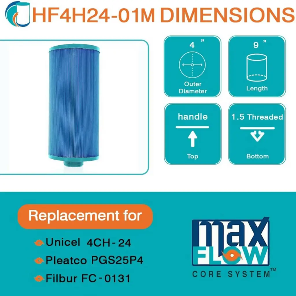 Dive into the realm of pristine waters with the 2-pack of Hurricane HF4H24-01M Elite Aseptic Cartridge Filter, where unparalleled cleanliness awaits. Crafted with meticulous precision, this filter guarantees seamless compatibility with a range of models including Unicel 4CH-24, PGS25P4, Filbur FC-0131, After Hours Spas, Nemco Spas, Threaded 25, Top Load, and other compatible models. With dimensions measuring 9.75 inches in length, an outer diameter of 4.63 inches, and the top handle and the bottom hole being 1.5 inches threaded, achieving an ideal fit is effortless, measure your current filter for a flawless match. Experience a new level of filtration prowess with the aseptic point bond filter media of this spa essential, elevating filtration effectiveness beyond traditional non-woven materials. From biomass to dirt, debris, hair, leaves, and even critters, this filter cartridge is a formidable barrier, leaving your pool or spa immaculate and inviting. Esteemed by both industry professionals and homeowners, this spa accessory is meticulously engineered for durability, ensuring prolonged service life and effortless upkeep. Bid farewell to the inconvenience of frequent replacements and welcome substantial savings on filters, all while minimizing wear and tear on your pump. Discover the exceptional cleaning prowess of the 2-pack of Hurricane HF4H24-01M Elite Aseptic Cartridge Filter,, your ultimate solution for pristine waters and unparalleled excellence.
