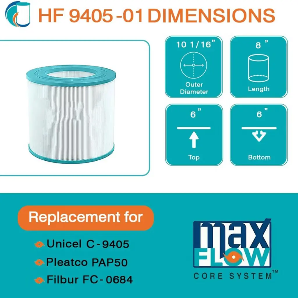 Dive into the realm of pristine waters with the Hurricane HF9405-01 Advanced Cartridge Filter, where unparalleled cleanliness awaits. Crafted with meticulous precision, this filter guarantees seamless compatibility with a range of models including Pleatco PAP50, Unicel C-9405, Filbur FC-0684, Pentair Clean & Clear 50, and Predator 50. With dimensions measuring 8.63 inches in length, an outer diameter of 10.06 inches, and top and bottom holes being 6 inches, achieving an ideal fit is effortless, just measure your current filter for a flawless match. Experience a new level of filtration prowess with its advanced point bond filter media, elevating filtration effectiveness beyond traditional non-woven materials. From biomass to dirt, debris, hair, leaves, and even critters, this filter acts as a formidable barrier, leaving your pool or spa immaculate and inviting. Esteemed by both industry professionals and homeowners, this filter is meticulously engineered for durability, ensuring prolonged service life and effortless upkeep. Bid farewell to the inconvenience of frequent replacements and welcome substantial savings on filters, all while minimizing wear and tear on your pump. Discover the exceptional cleaning prowess of the Hurricane HF9405-01 Advanced Cartridge Filter, your ultimate solution for pristine waters and unparalleled excellence.