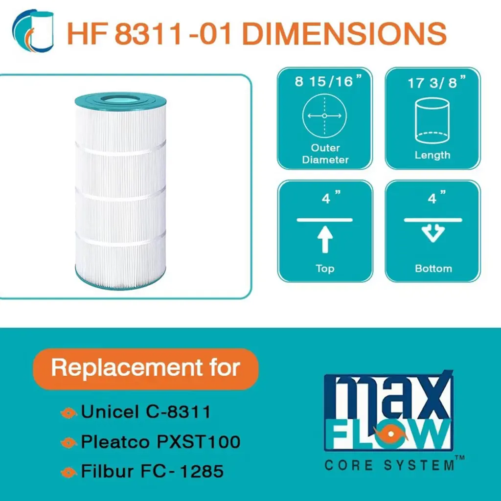 Dive into the realm of pristine waters with the 2 pack of Hurricane HF8311-01 Advanced Cartridge Filter, where unparalleled cleanliness awaits. Crafted with meticulous precision, this filter guarantees seamless compatibility with a range of models including Unicel C-8311, PXST100, Filbur FC-1285, Hayward X-Stream CC100, and other compatible models. With dimensions measuring 17.37 inches in length, an outer diameter of 8.94 inches, and top and bottom holes being 4 inches, achieving an ideal fit is effortless, measure your current filter for a flawless match. Experience a new level of filtration prowess with the advanced point bond filter media of this spa essential, elevating filtration effectiveness beyond traditional non-woven materials. From biomass to dirt, debris, hair, leaves, and even critters, this filter cartridge is a formidable barrier, leaving your pool or spa immaculate and inviting. Esteemed by both industry professionals and homeowners, this spa accessory is meticulously engineered for durability, ensuring prolonged service life and effortless upkeep. Bid farewell to the inconvenience of frequent replacements and welcome substantial savings on filters, all while minimizing wear and tear on your pump. Discover the exceptional cleaning prowess of the 2 pack of Hurricane HF8311-01 Advanced Cartridge Filter, your ultimate solution for pristine waters and unparalleled excellence.