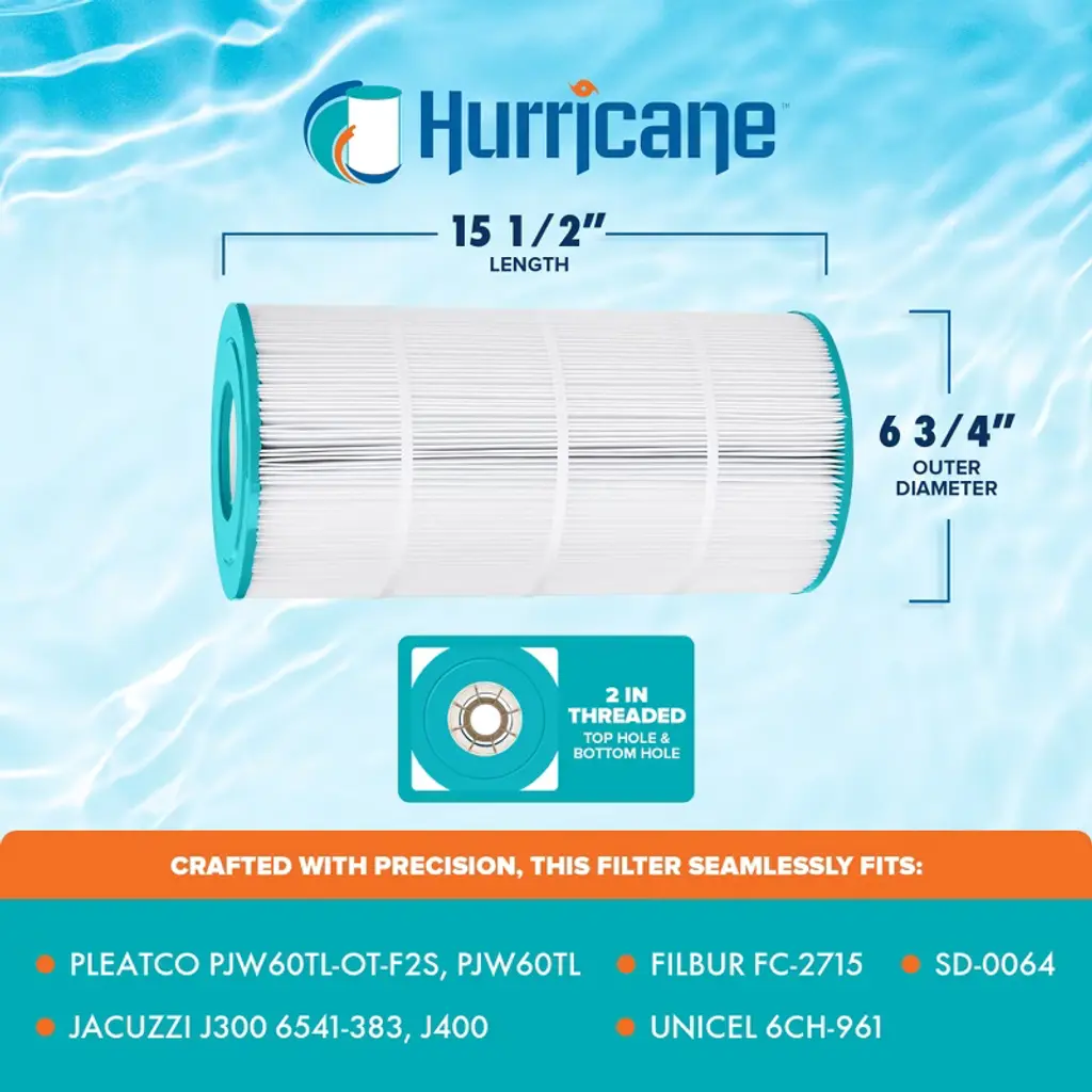Hurricane Hf6h961 Replacement Spa Filter Cartridge For Pjw60tl-ot-f2s, Pjw60tl, J300 6541-383, J400, Filbur Fc-2715, Unicel 6Ch-961, & Sd-0064, 4 Pack