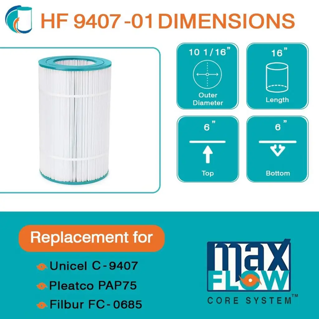 Hurricane Hf9407-01 Advanced Pool Filter Cartridge For Pap75, Unicel C-9407, Filbur Fc-0685, Pentair Clean & Clear 75, Predator 75, Cal Spas