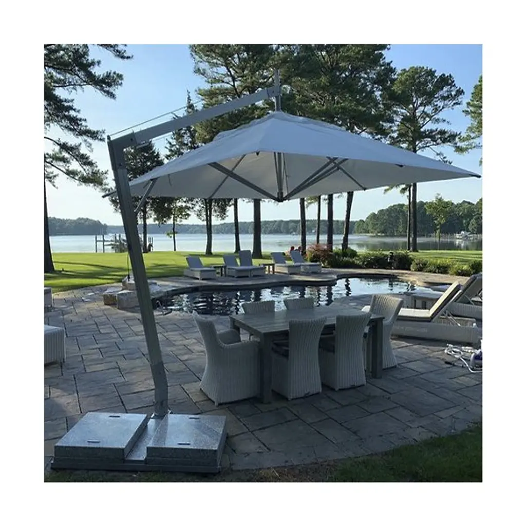 Hurricane Square Side Wind Aluminum Cantilever Umbrella With Base, 10 Ft.