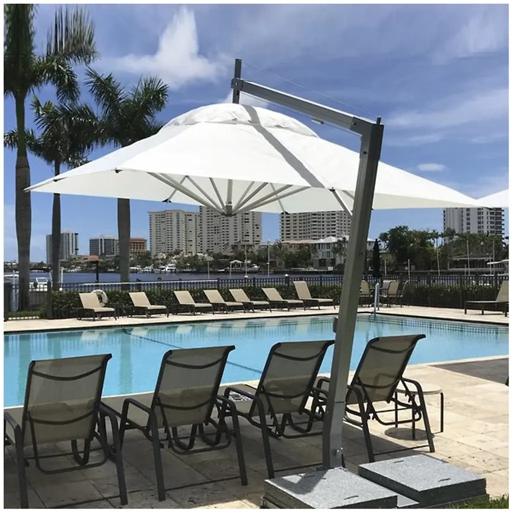 Hurricane Square Side Wind Aluminum Cantilever Umbrella With Base, 11 Ft.