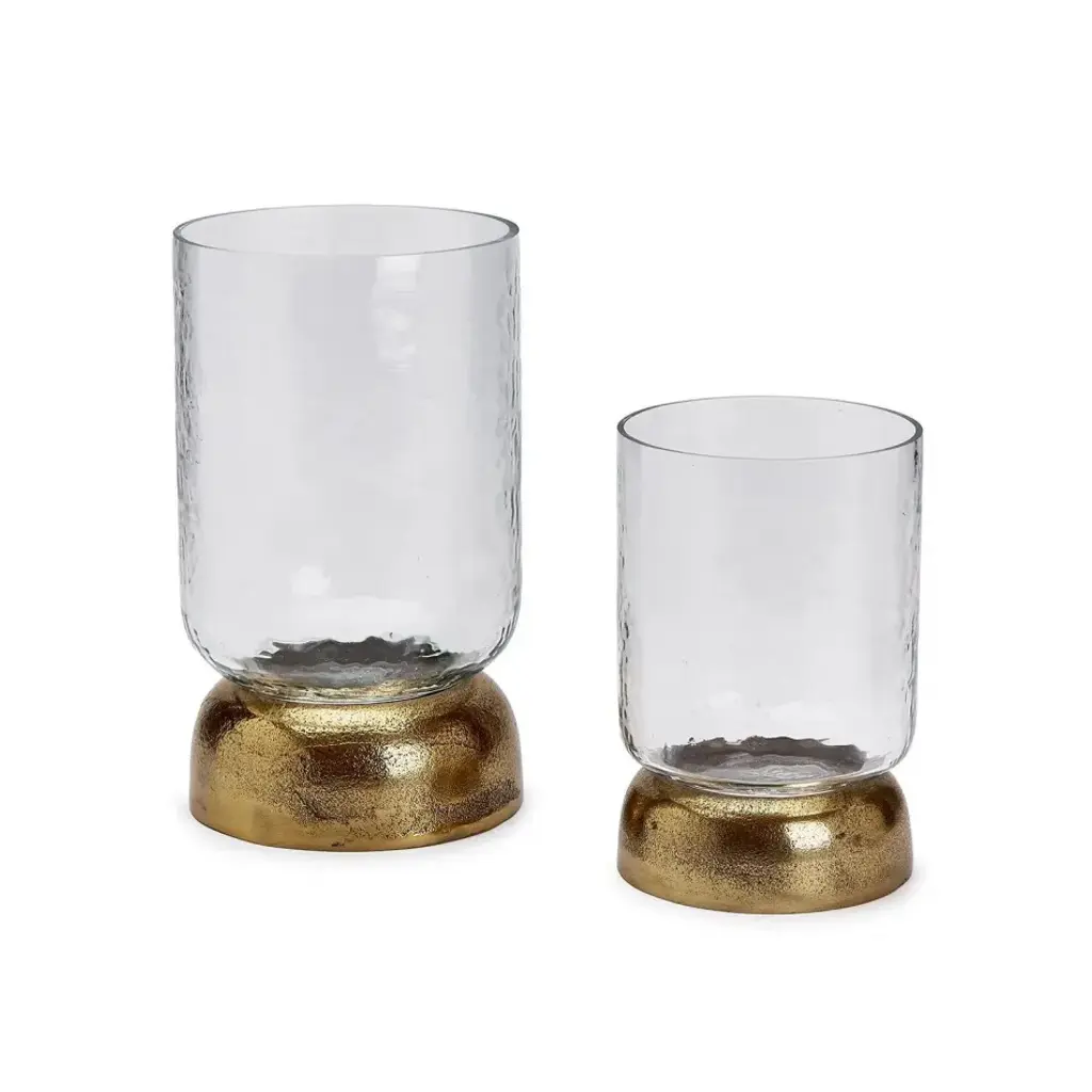 Crafted in recycled aluminum and glass, this set of 2 hurricanes reflects the light so beautifully. And with a hammered golden base, it adds a warm touch to your décor.