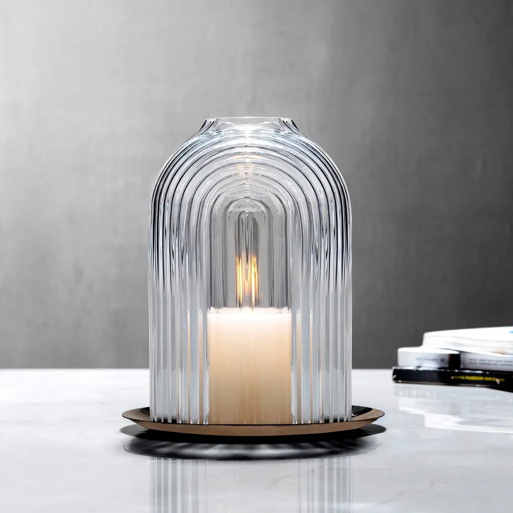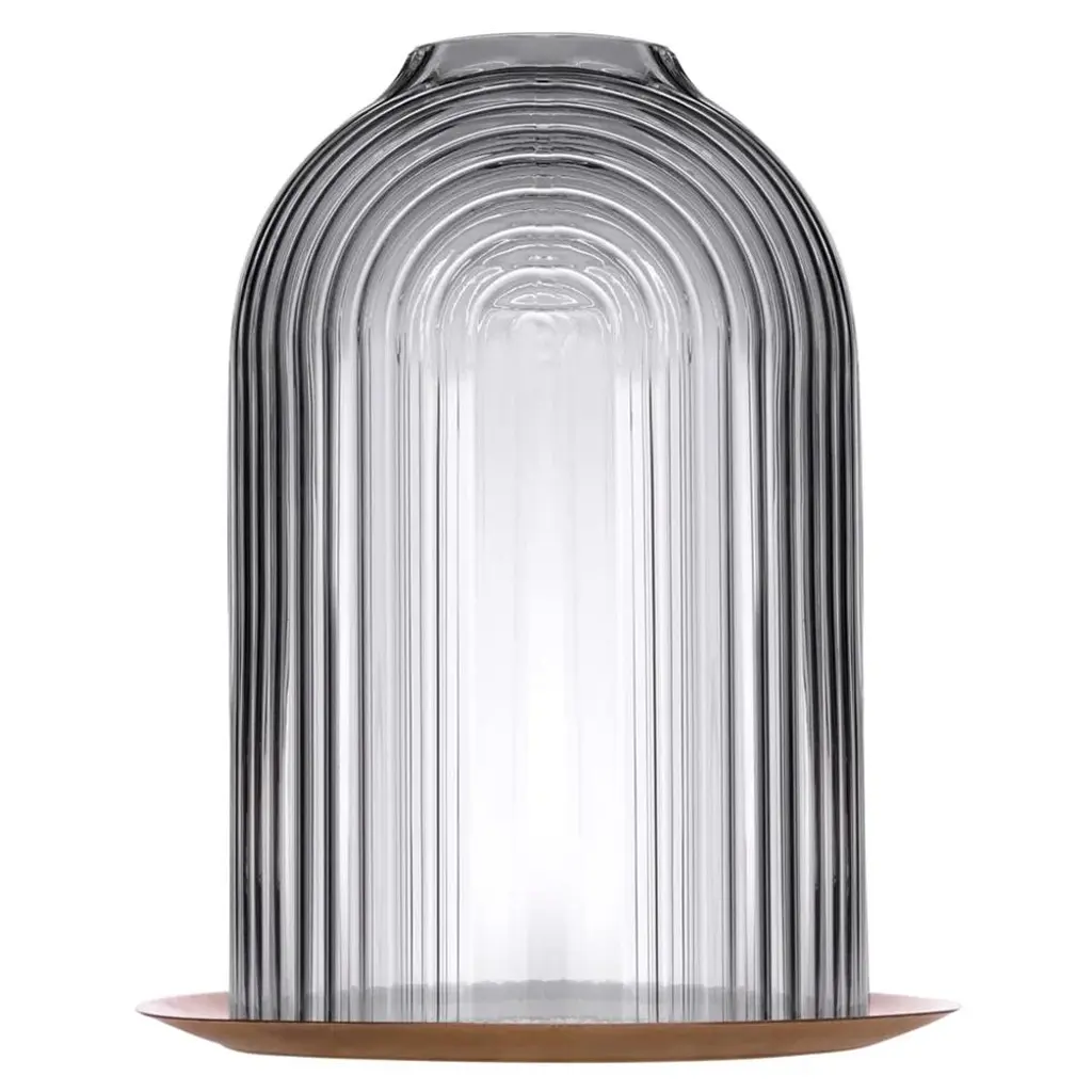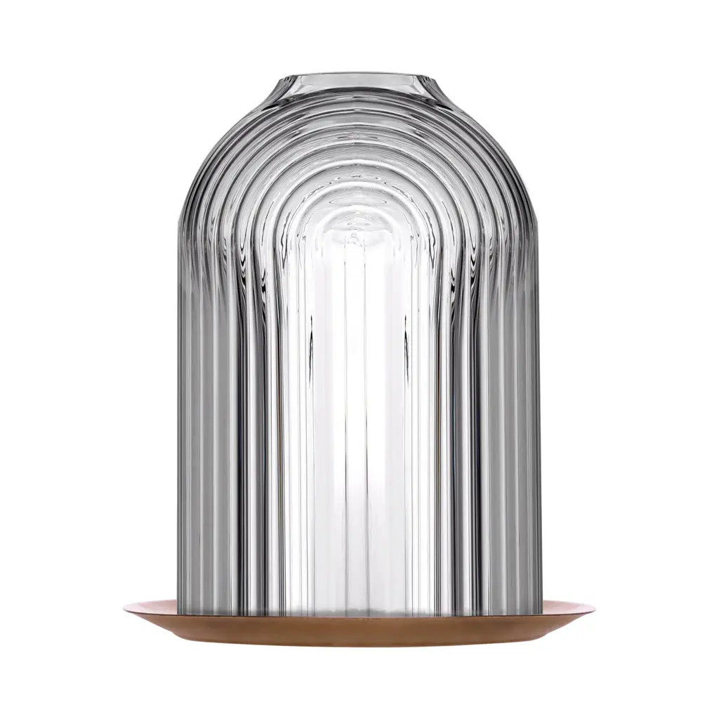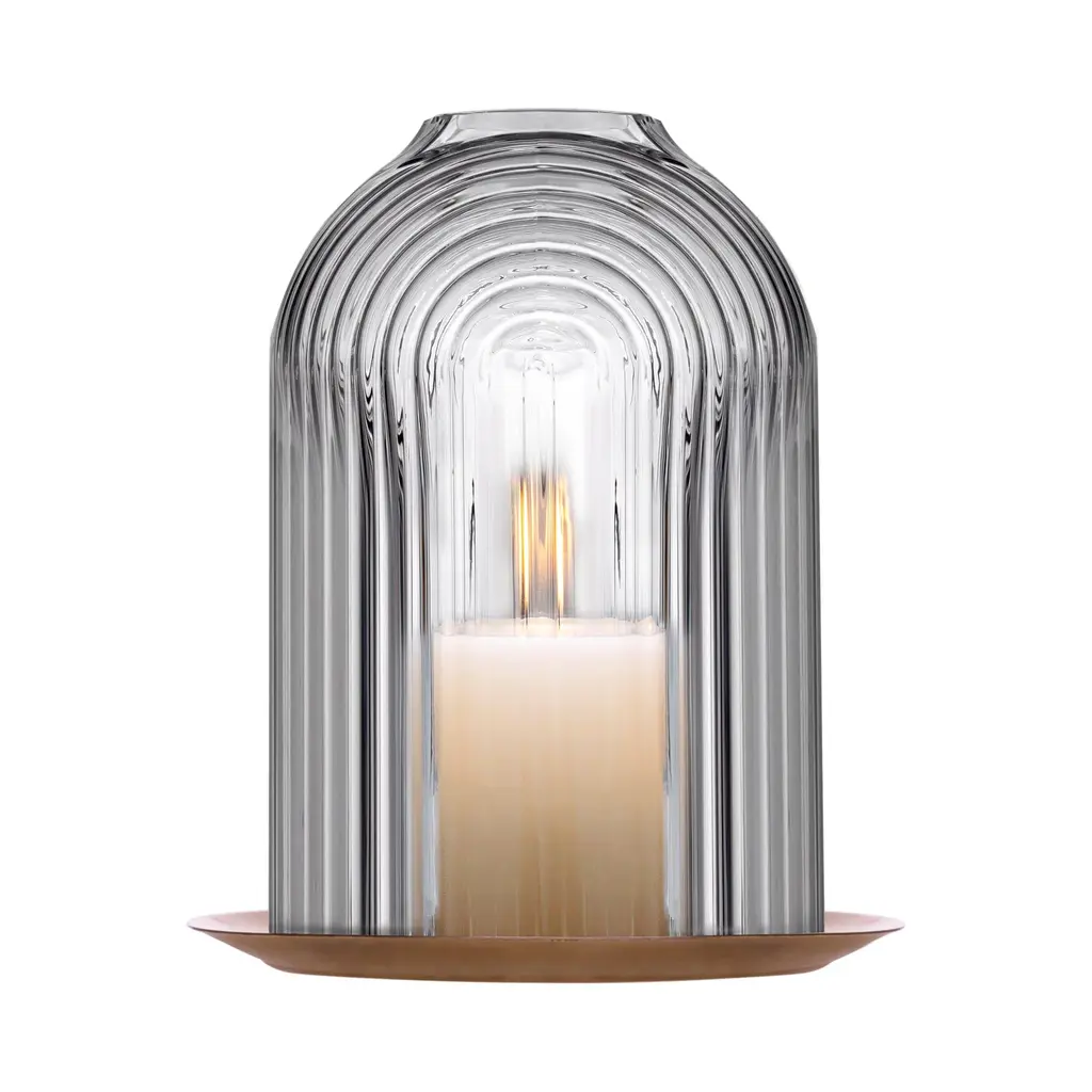 Introducing the Ilo Candleholder from luxury brand Nude Glass, perfect for creating captivating displays both indoors and outdoors. Elegant and eye-catching, this exquisite piece showcases a hand-engraved ripple pattern cradled within a clear crystal dome, exquisitely juxtaposed against a light-reflective copper base. With its unparalleled craftsmanship, the Ilo will make a statement in any home. Highlights