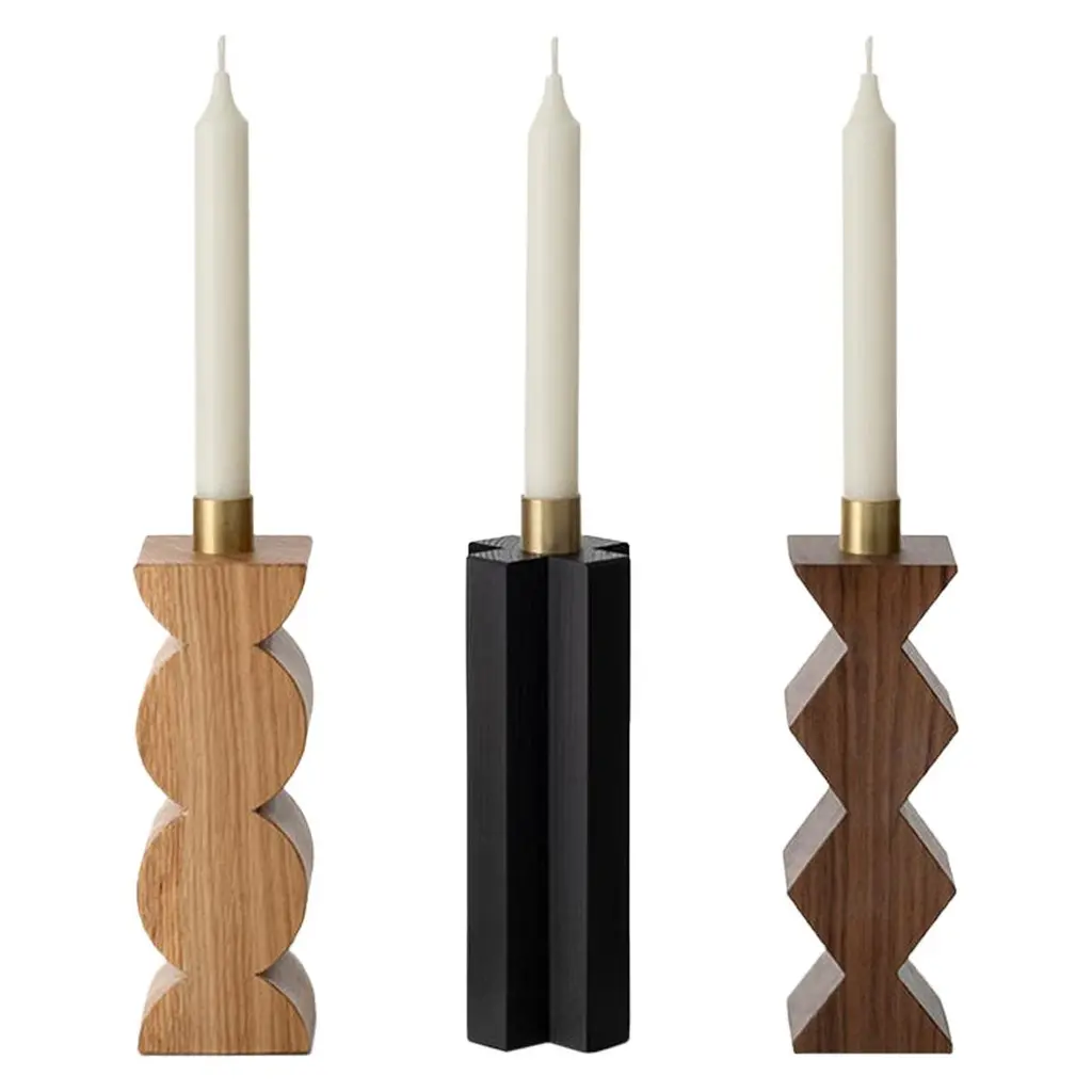The Ilva Candleholders, Set 2 from Uttermost are crafted from tamarind wood, showcasing its natural finish and distinctive grain patterns for a warm, organic look. Each piece is unique, highlighting the beauty of the wood's texture. They are topped with satin black candle cups and offer a striking contrast and modern edge, making them a stylish accent for any interior.