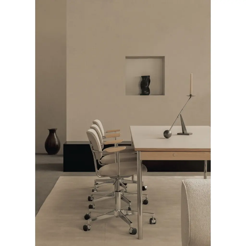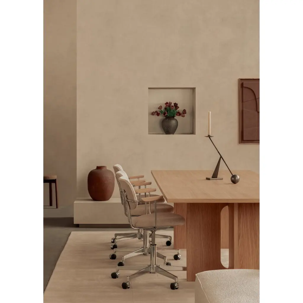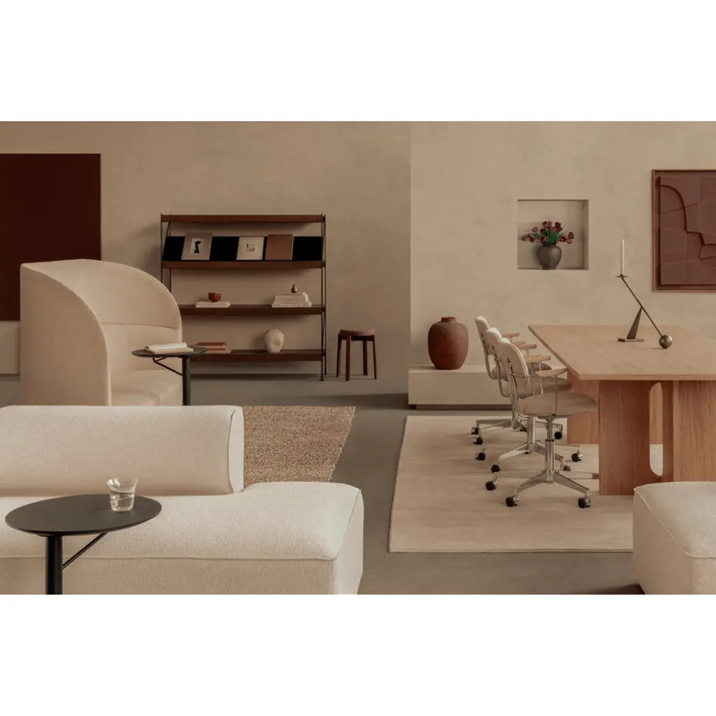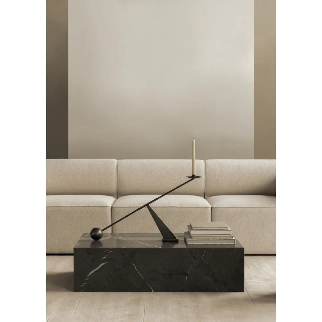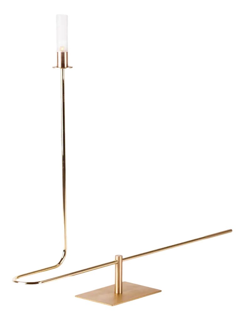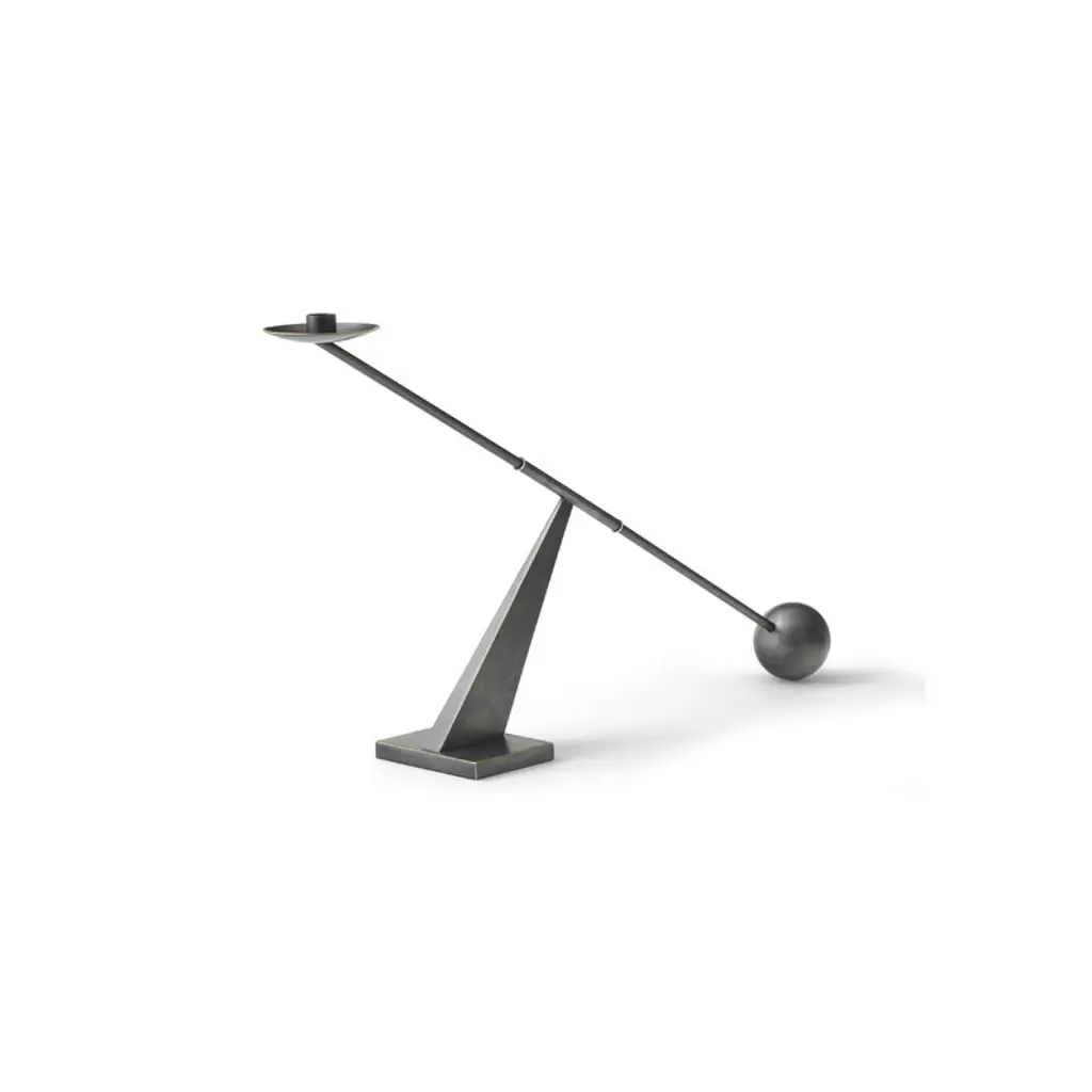 Audo Copenhagen's Interconnect candle holder plays with the contrasts of simple geometric shapes and exaggerated proportions. Designed by Colin King, the streamlined metallic candle holder combines round elements with angles of varying degrees. The Interconnect candle holder makes a stunning centerpiece with a single taper candle, and due to its sculptural silhouette, it can also be used as a decorative object even without a candle.