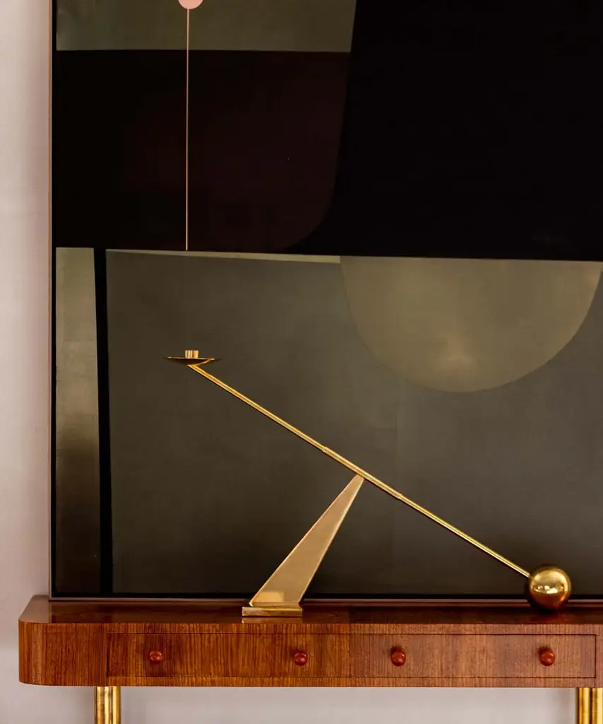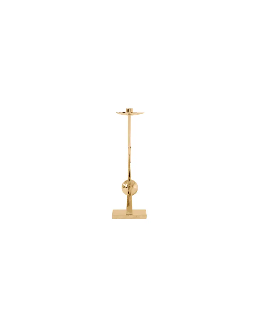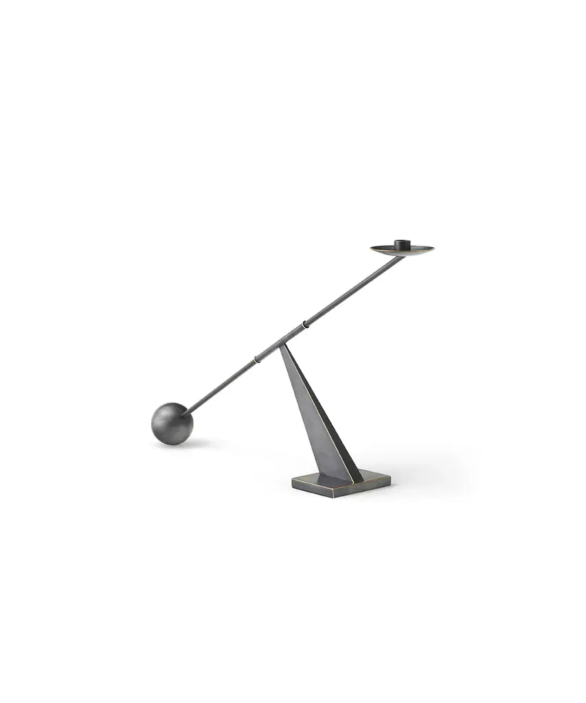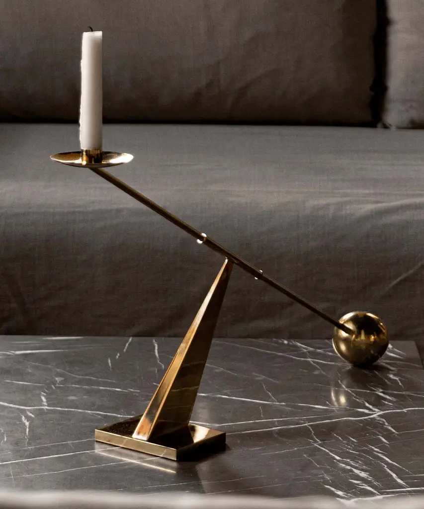 Interconnect Candle Holder is a bold and illuminating centerpiece of exaggerated proportions, designed for MENU by Colin King. As a source of cozy candlelight, it is characterized by its deceptively simple geometric form: a sphere, an angle and a line, which unite to create a unique design. Available in polished brass or painted steel, it goes beyond its intended use to function as a sculpture.Designed by Colin King Studio LLC for Danish design company, Audo Copenhagen.