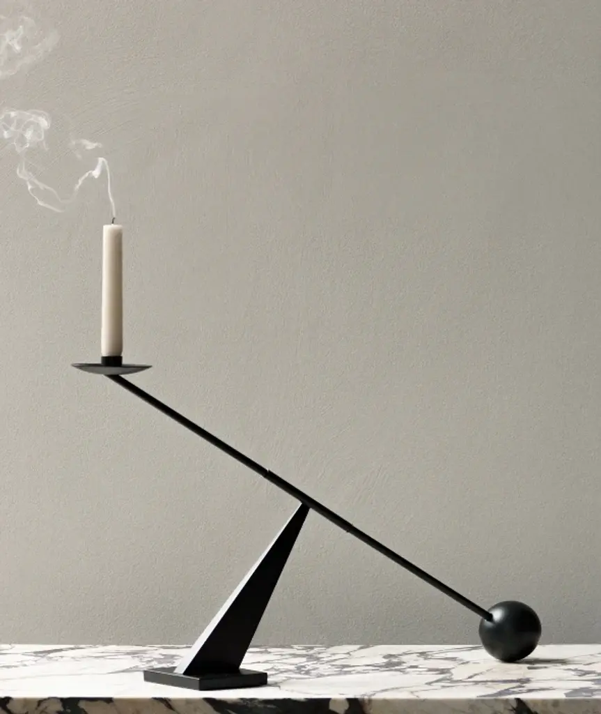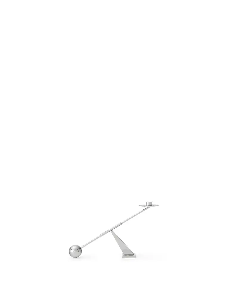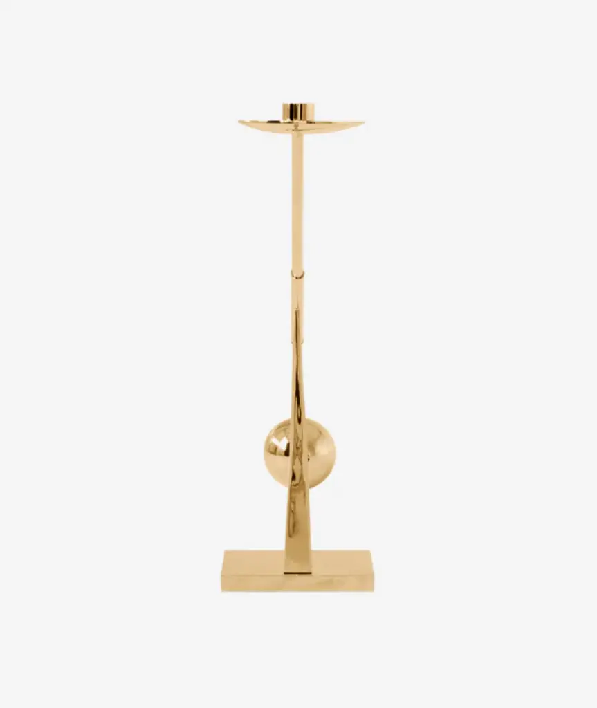 Interconnect Candle Holder is a bold and illuminating centerpiece of exaggerated proportions, designed for Audo Copenhagen by Colin King. As a source of cozy candlelight, it is characterized by its deceptively simple geometric form: a sphere, an angle and a line, which unite to create a unique design. Available in polished brass or painted steel, it goes beyond its intended use to function as a sculpture.