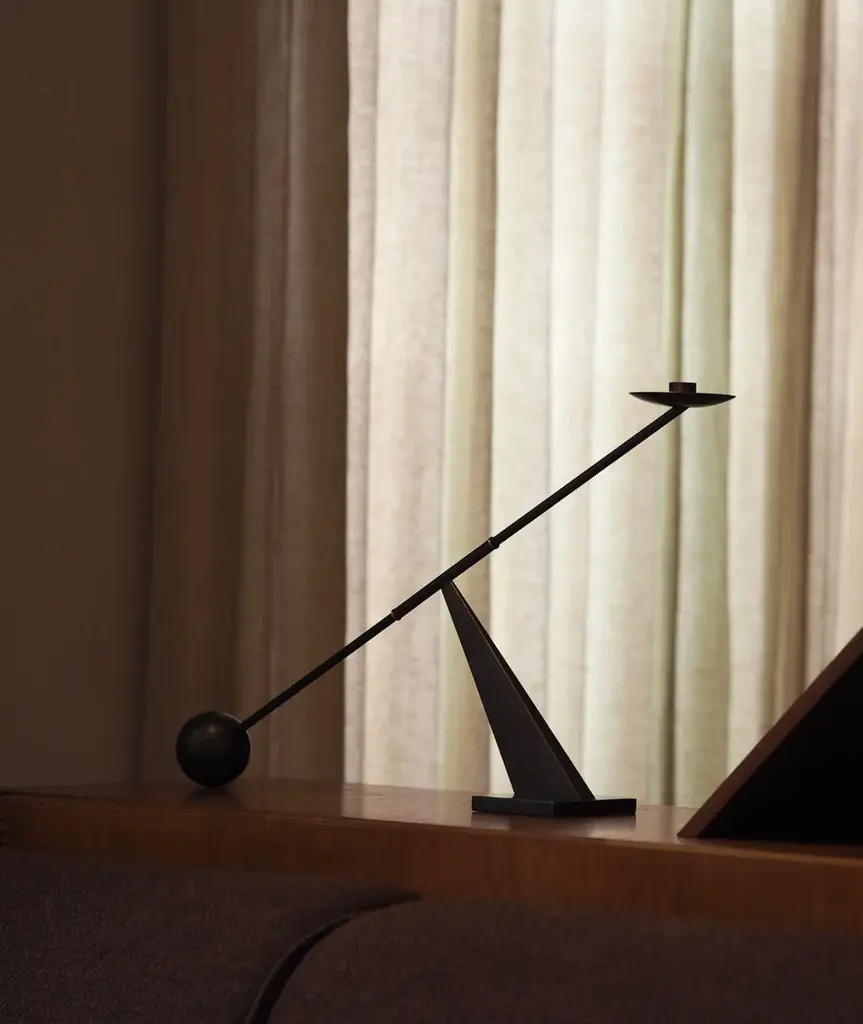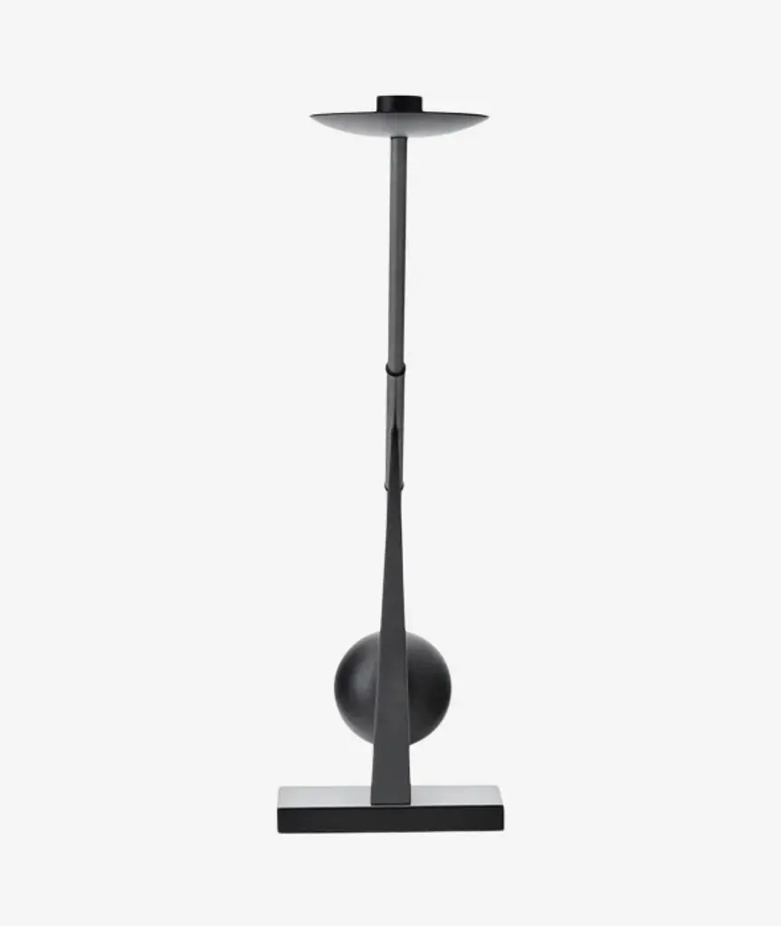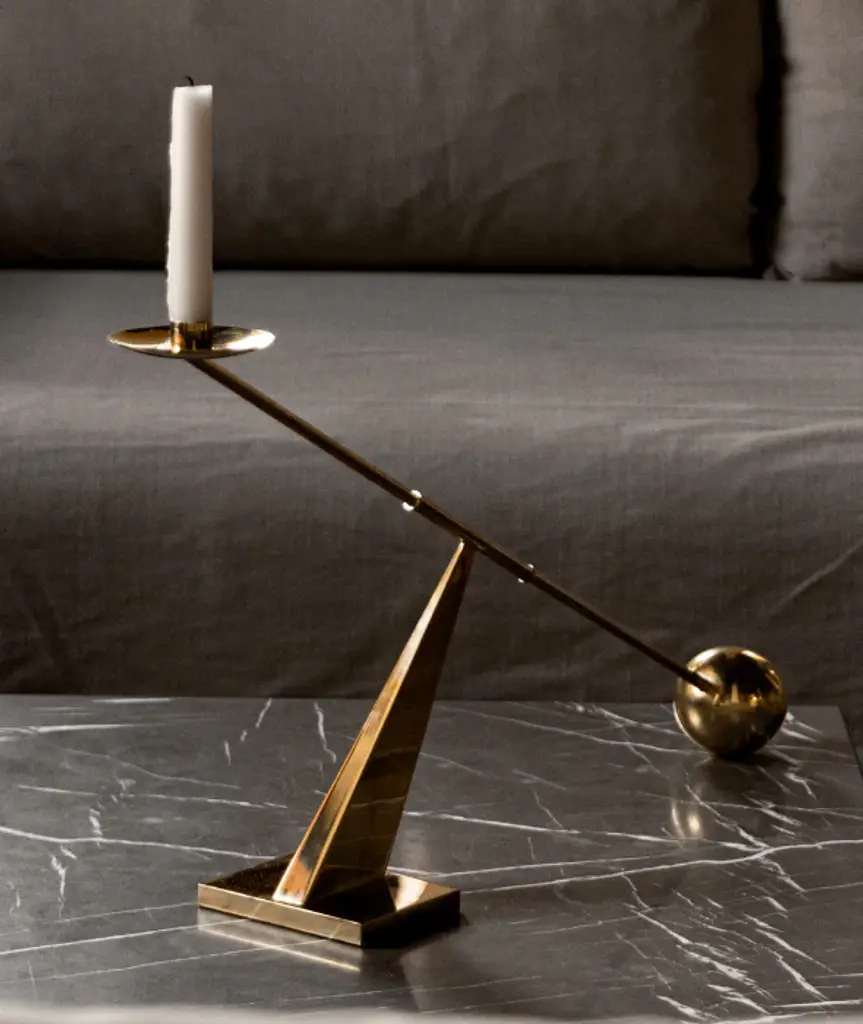 Interconnect Candle Holder is a bold and illuminating centerpiece of exaggerated proportions, designed for Audo Copenhagen by Colin King. As a source of cozy candlelight, it is characterized by its deceptively simple geometric form: a sphere, an angle and a line, which unite to create a unique design. Available in polished brass or painted steel, it goes beyond its intended use to function as a sculpture.