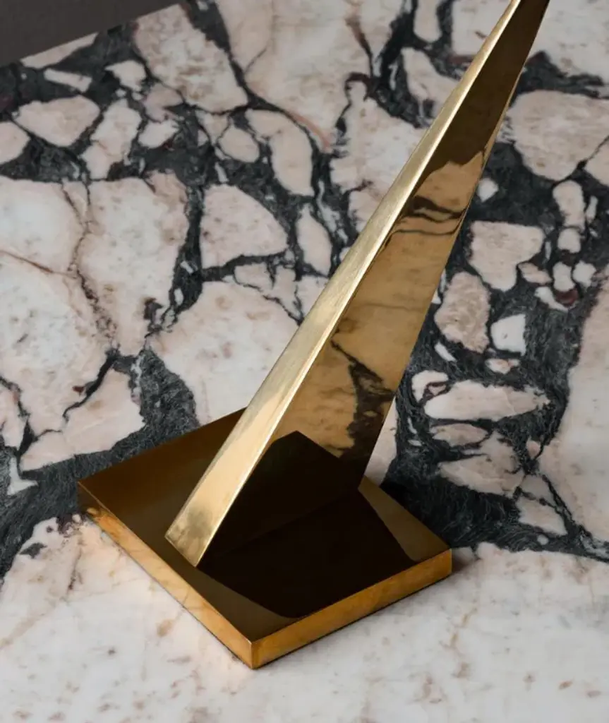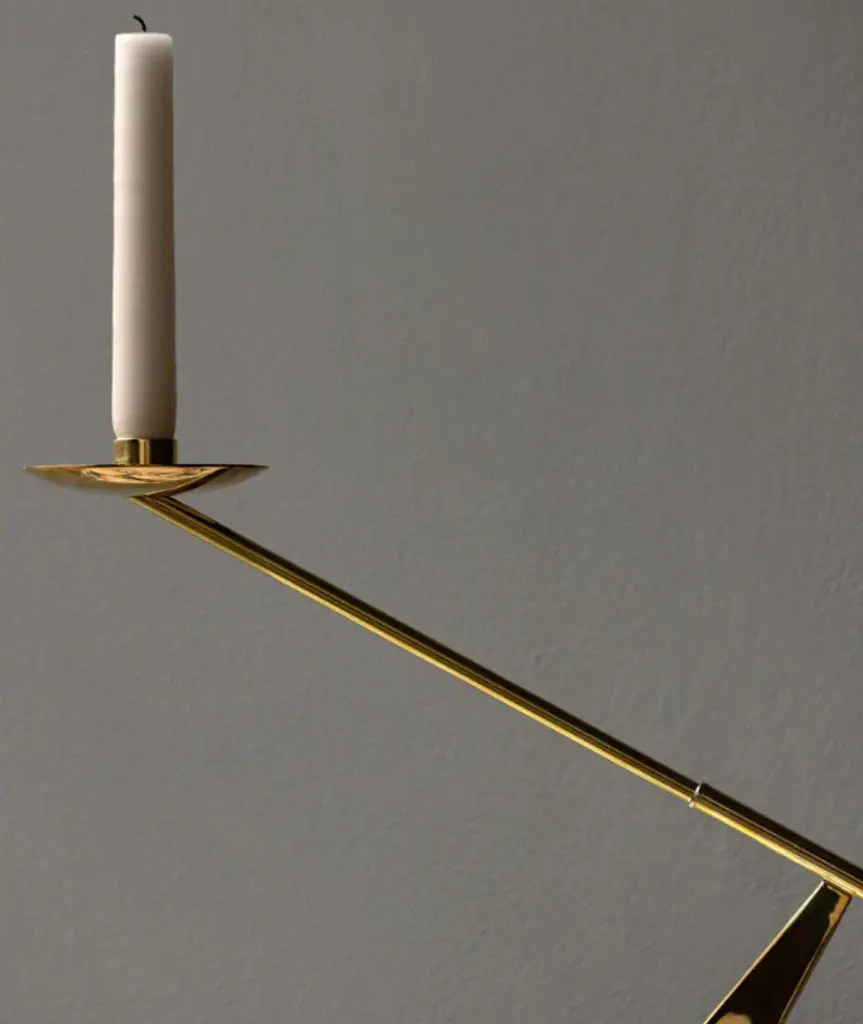 Interconnect Candle Holder is a bold and illuminating centerpiece of exaggerated proportions, designed for Audo Copenhagen by Colin King. As a source of cozy candlelight, it is characterized by its deceptively simple geometric form: a sphere, an angle and a line, which unite to create a unique design. Available in polished brass or painted steel, it goes beyond its intended use to function as a sculpture.