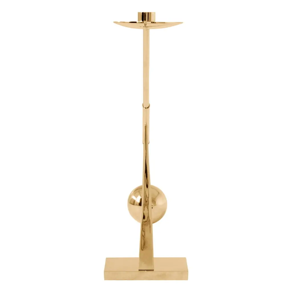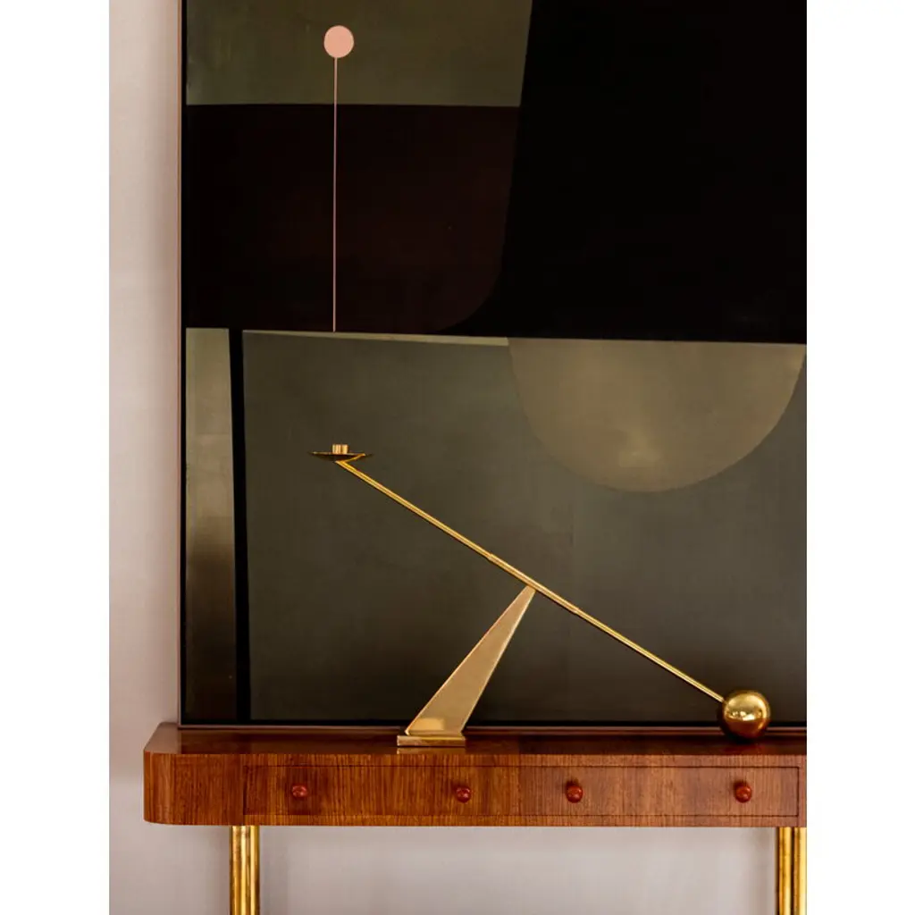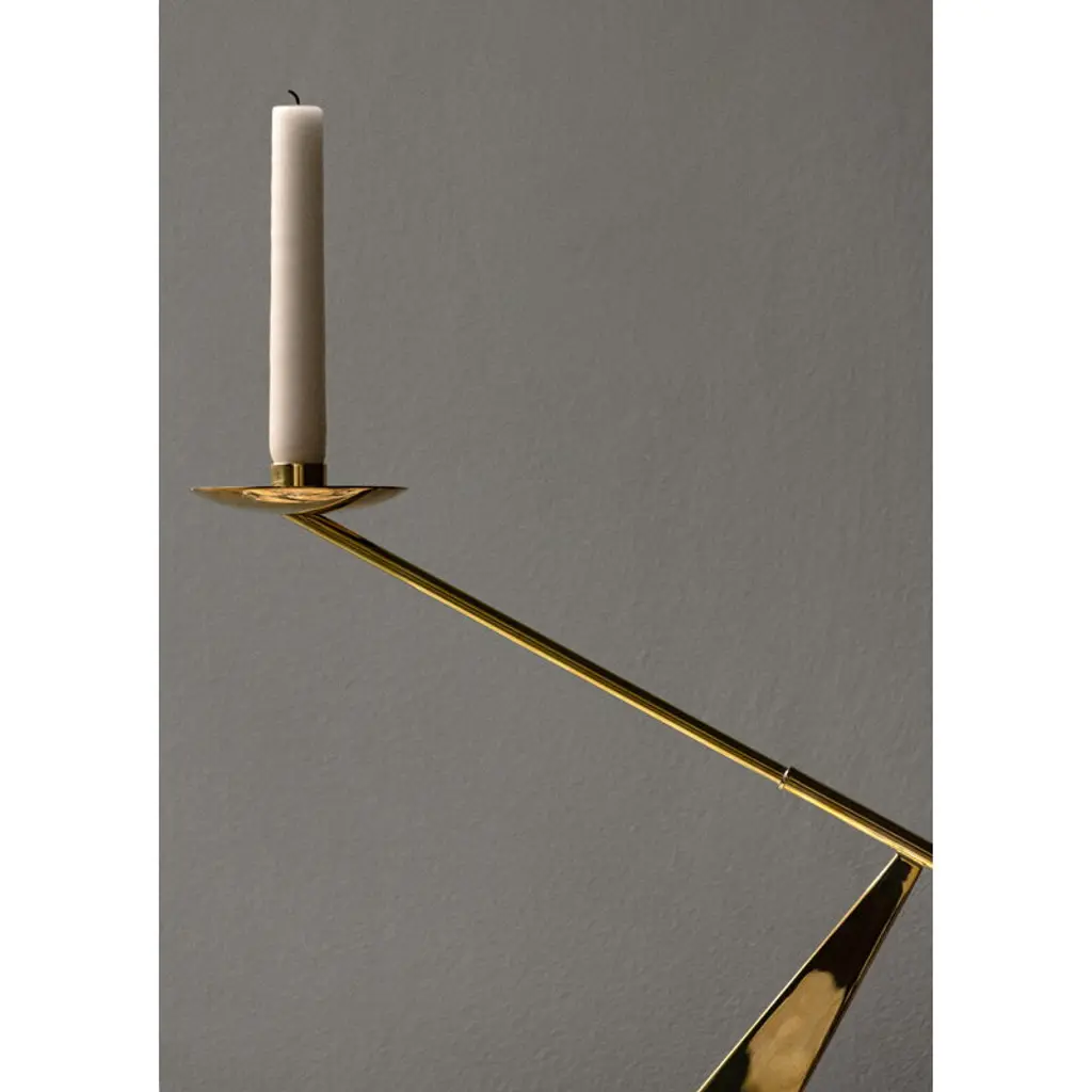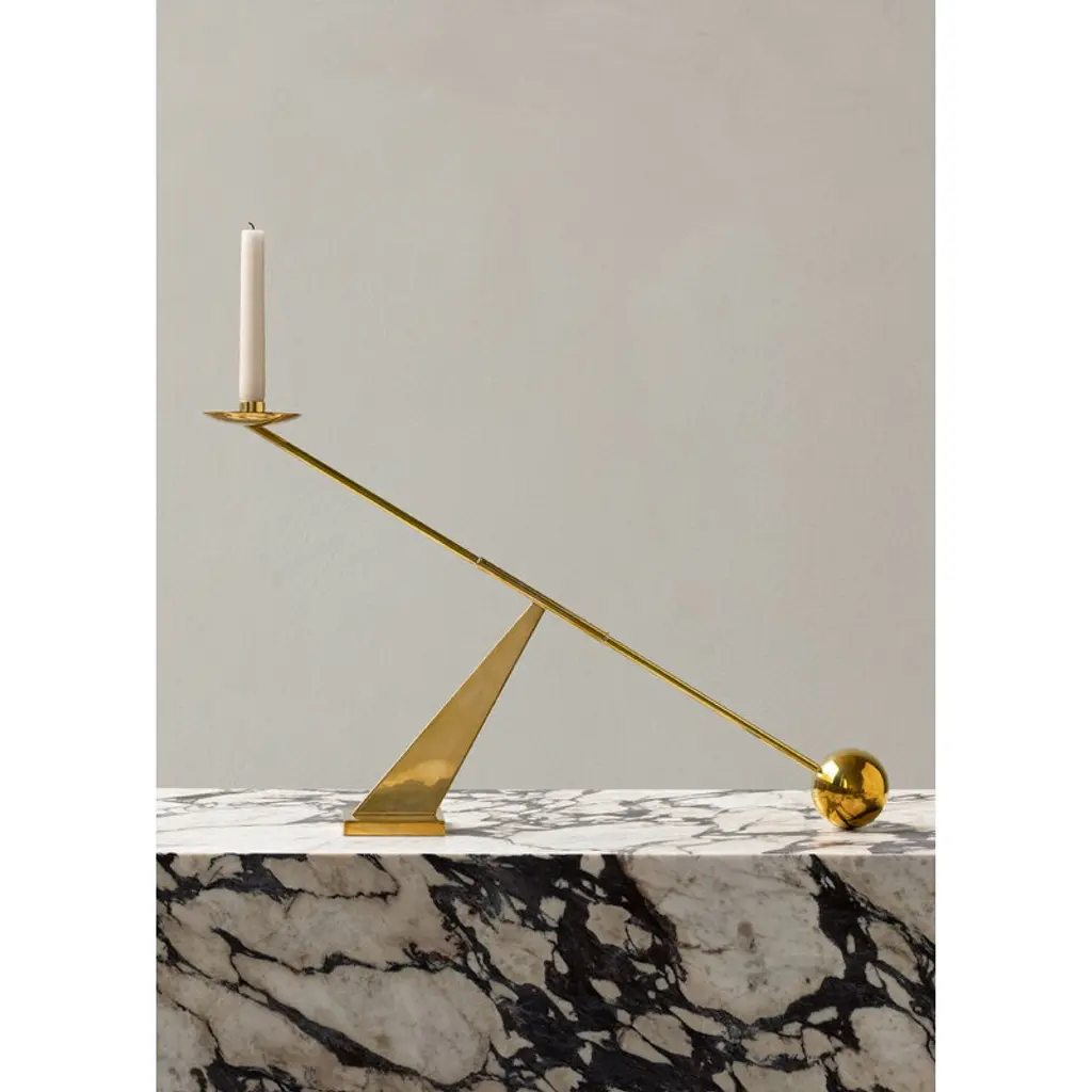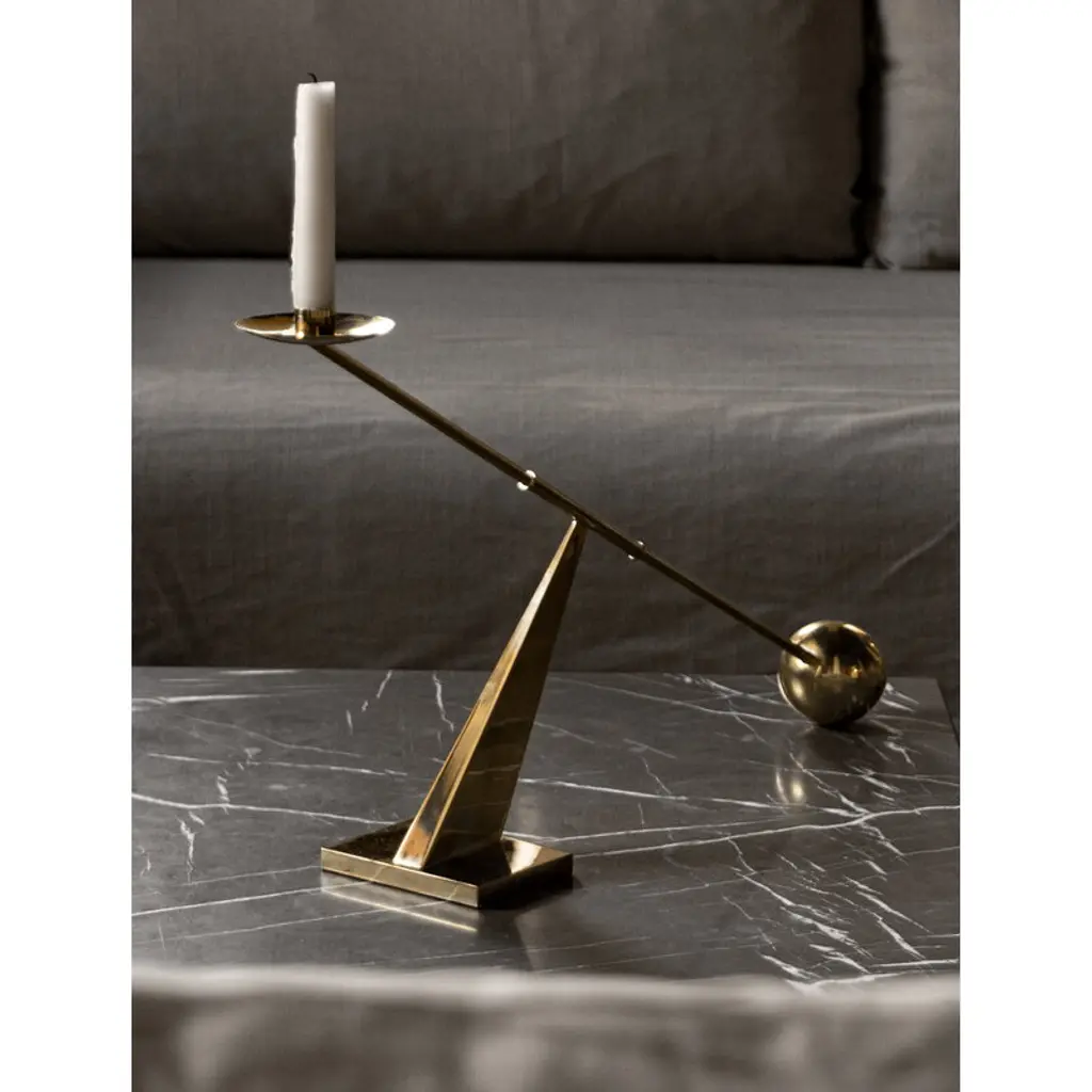 Audo Copenhagen’s Interconnect candle holder plays with the contrasts of simple geometric shapes and exaggerated proportions. Designed by Colin King, the streamlined metallic candle holder combines round elements with angles of varying degrees. The Interconnect candle holder makes a stunning centerpiece with a single taper candle, and due to its sculptural silhouette, it can also be used as a decorative object even without a candle.