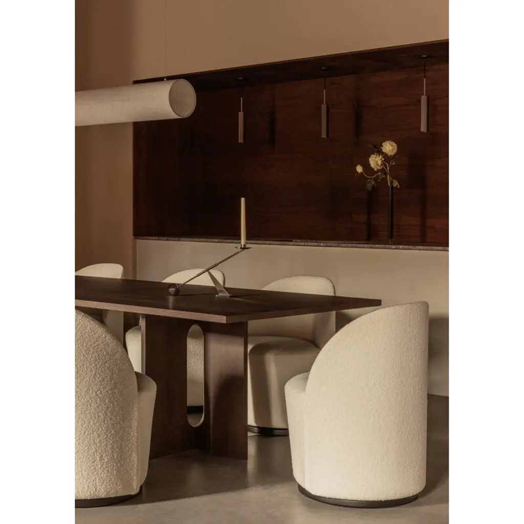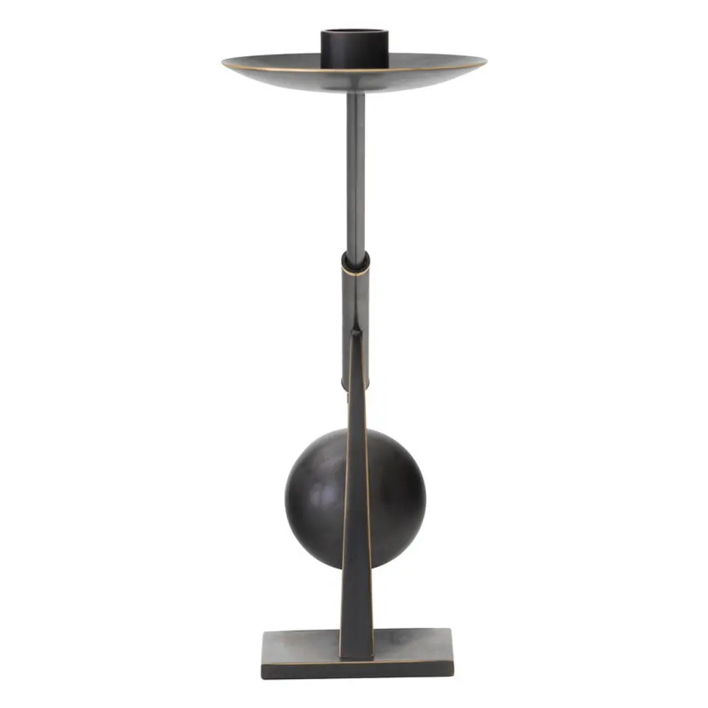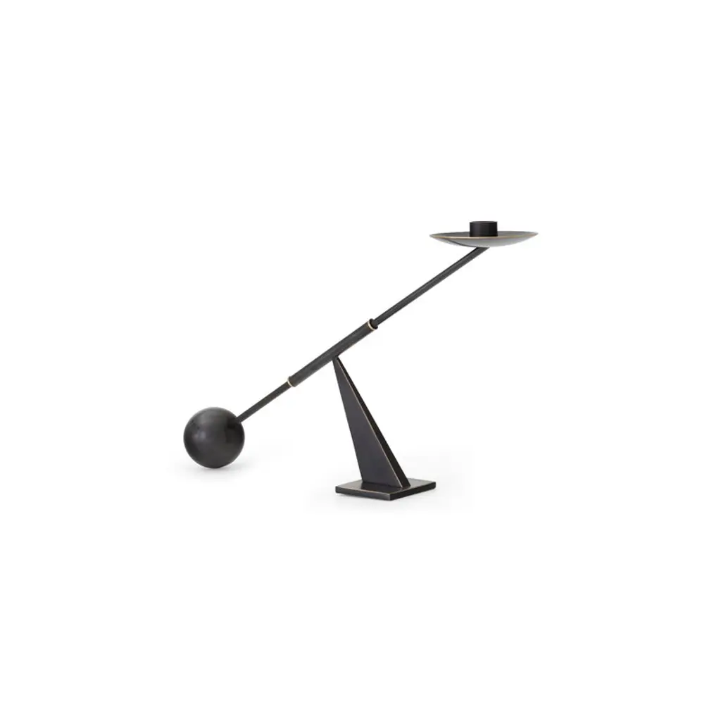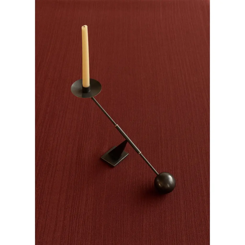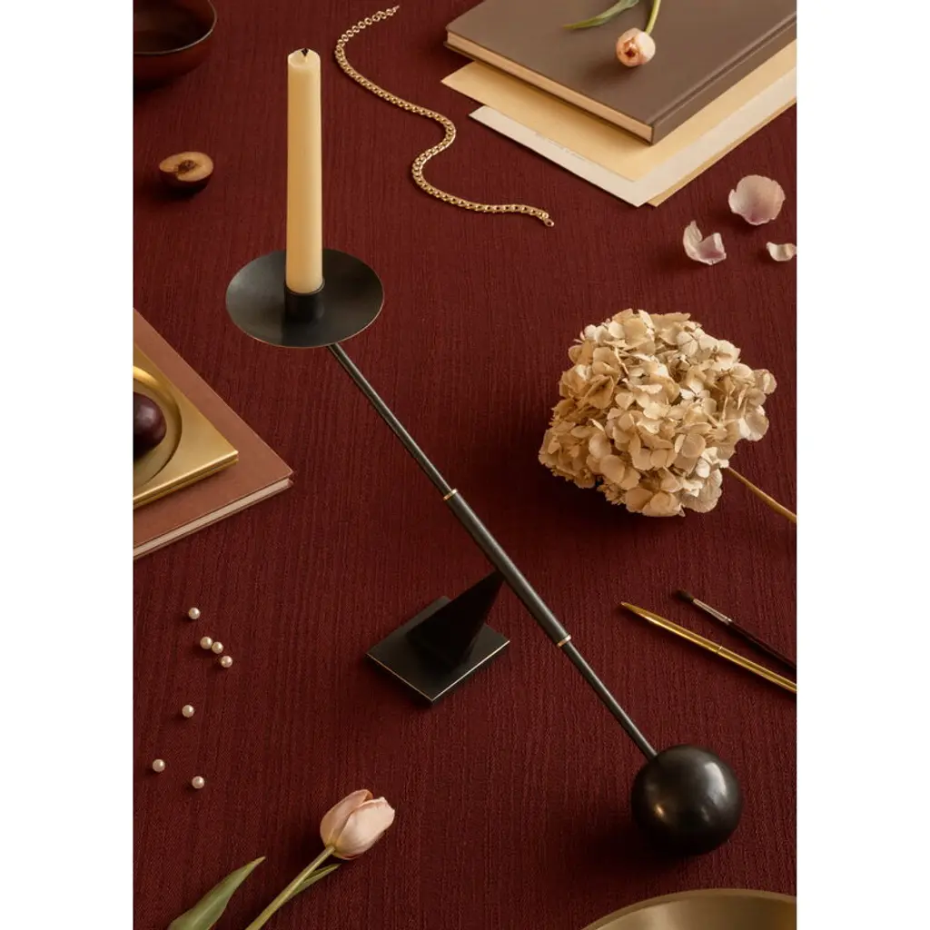 Audo Copenhagen’s Interconnect candle holder plays with the contrasts of simple geometric shapes and exaggerated proportions. Designed by Colin King, the streamlined metallic candle holder combines round elements with angles of varying degrees. The Interconnect candle holder makes a stunning centerpiece with a single taper candle, and due to its sculptural silhouette, it can also be used as a decorative object even without a candle.