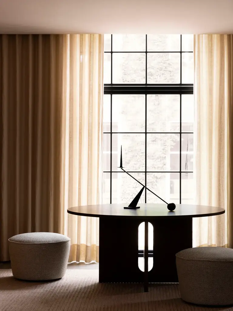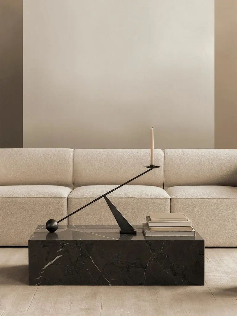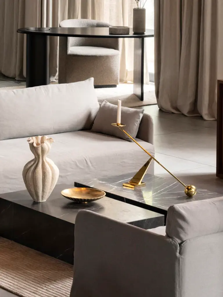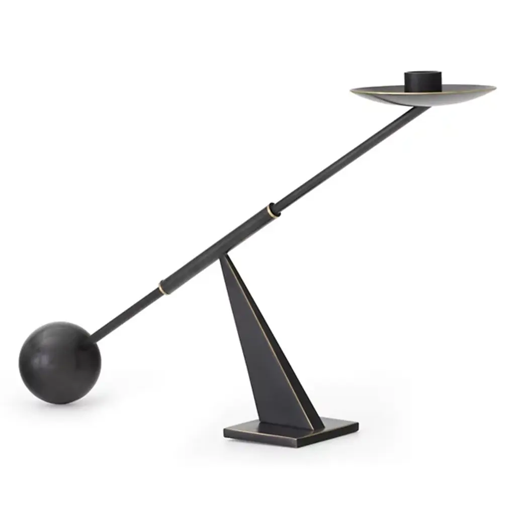 Interconnect Candle Holder is a bold and illuminating centerpiece of exaggerated proportions, designed for Audo by Colin King. As a source of cozy candlelight, it is characterized by its deceptively simple geometric form: a sphere, an angle and a line, which unite to create a unique design. Available in polished brass or painted steel, it goes beyond its intended use to function as a sculpture.