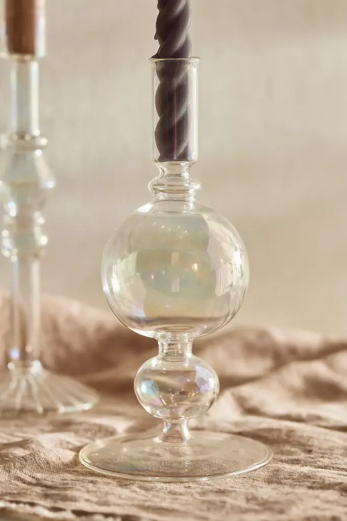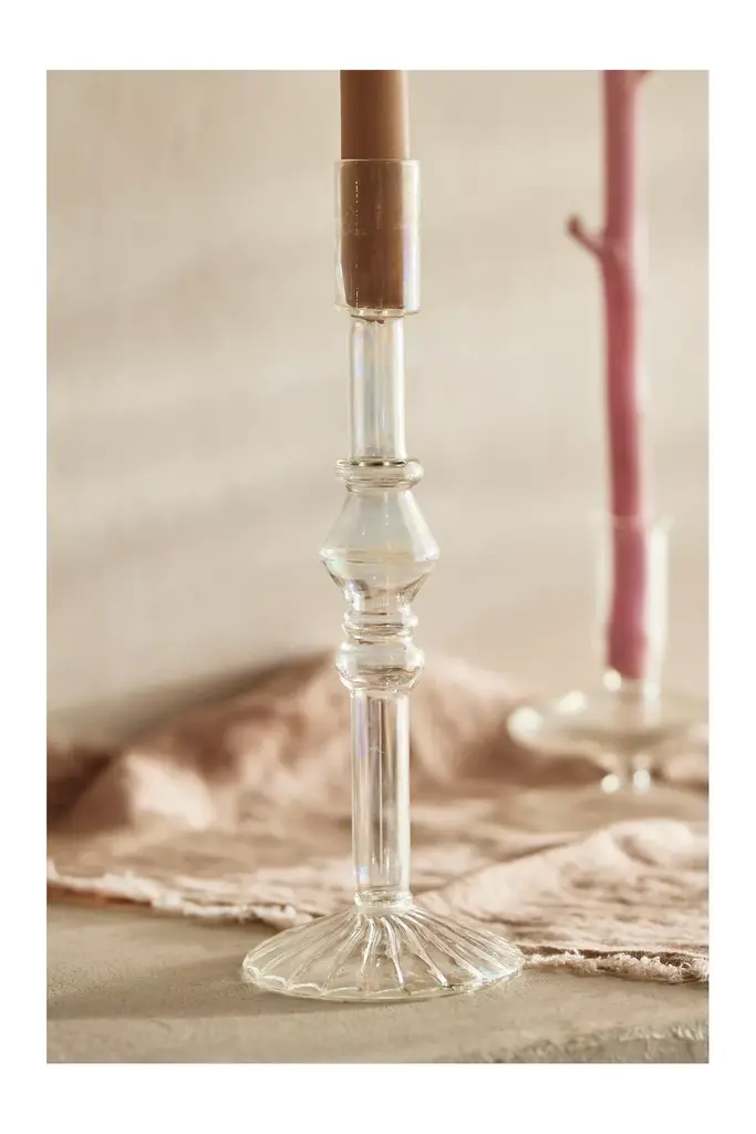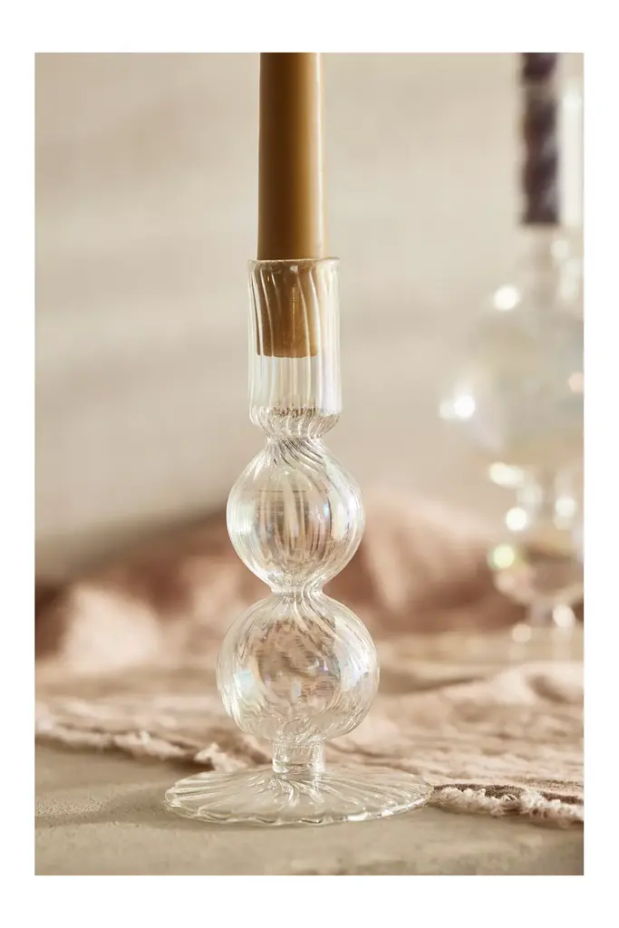 Inspired by the the elegantly undone mantels of the townhomes in the Mayfair neighborhood of London, this candlestick adds height, dimension, and character.Please note: With more silica content than regular soda lime glass, borosilicate glass is lightweight, high-quality, and beautifully transparent. Its stronger, able to withstand sudden temperature changes, and resistant to chemicalsbut as with all glassware, please handle with care!