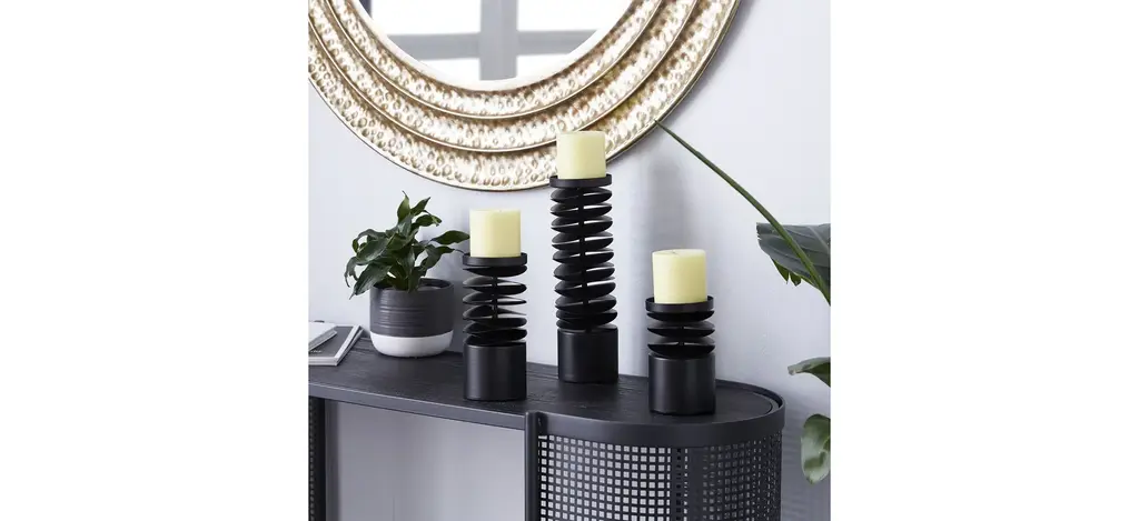 Add these Ivy Collection Aoshima Candle Holders Set of 2 to a windowsill or end table in a contemporary bedroom or den. Delight your guests and make any occasion extra special by adding a lighted or flameless candle. Made with a sturdy base, it is perfect for creating an elegant atmosphere on your table top or mantel. This decorative candle holder set will hold three pillar candles. Suitable for indoor use. These candle holders come as a set of three.