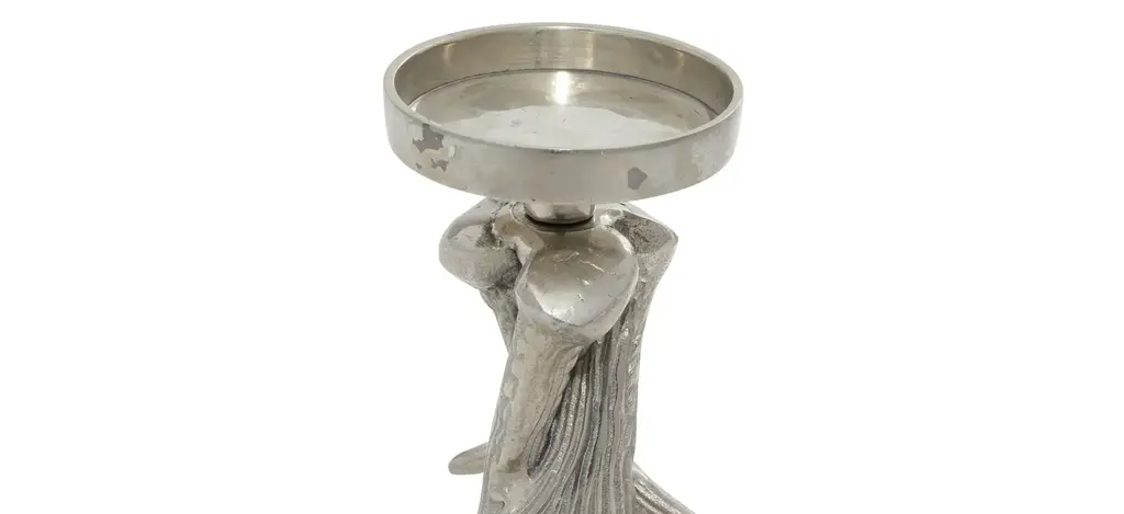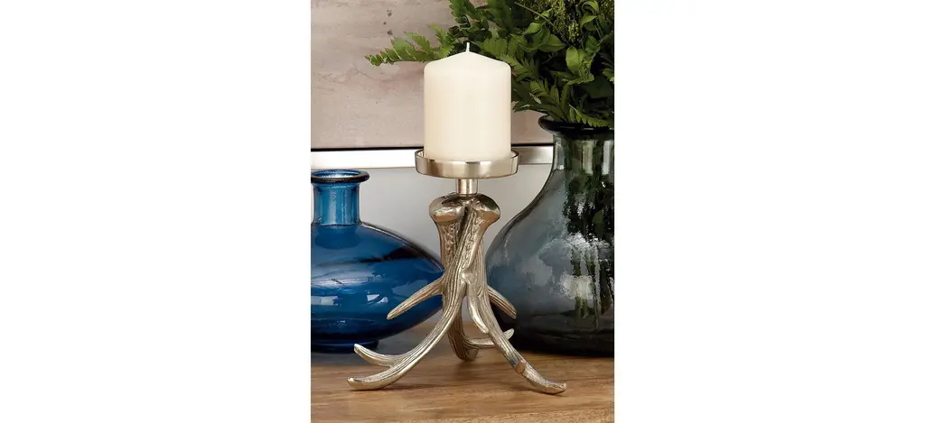 Add instant warmth and inviting ambiance to your home with this stylish Ivy Collection Drakenheorte Candle Holder. This piece is a great addition to any traditional interior and will surely complement your existing home decor. With round rim bobeche and inverted antler base, this candle holder works beautifully on any mantel or accent table. Made of aluminum, this home decor provides solid construction and is perfect for creating an elegant adornment or centerpiece. Delight your guests and make any occasion extra special by adding a lighted candle. Suitable for indoor use only. This stylish holder with antler design accommodates one pillar candle.