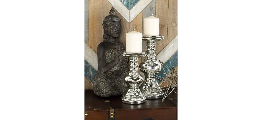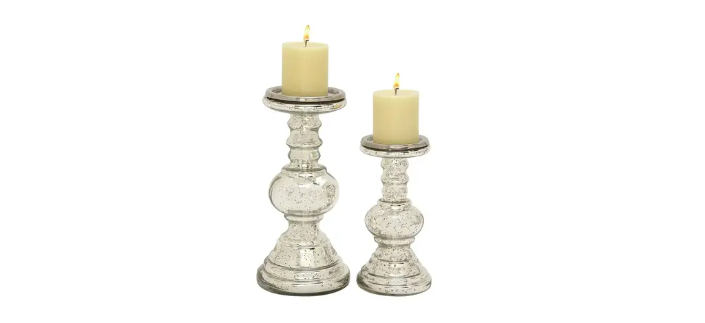 Ivy Collection Set Of 2 Silver Glass Candle Holders