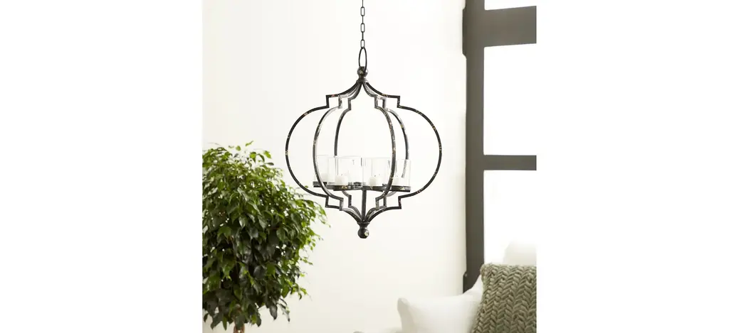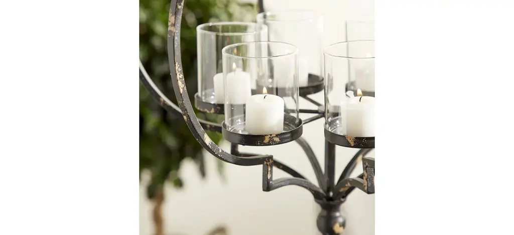 Infuse your space with the romantic candlelight glow that emits from this Ivy Collection Slobodan Candle Holder. Delight your guests and make any occasion extra special by adding a lighted or flameless candle. Made with a sturdy base, it is perfect for creating an elegant atmosphere on your table top or mantel. This indoor candle holder is easy to hang via a sturdy metal hook. Suitable for indoor use only. A decorative hanging candelabra for indoors that can accommodate 6 pillar candles.
