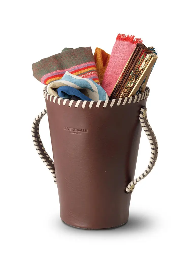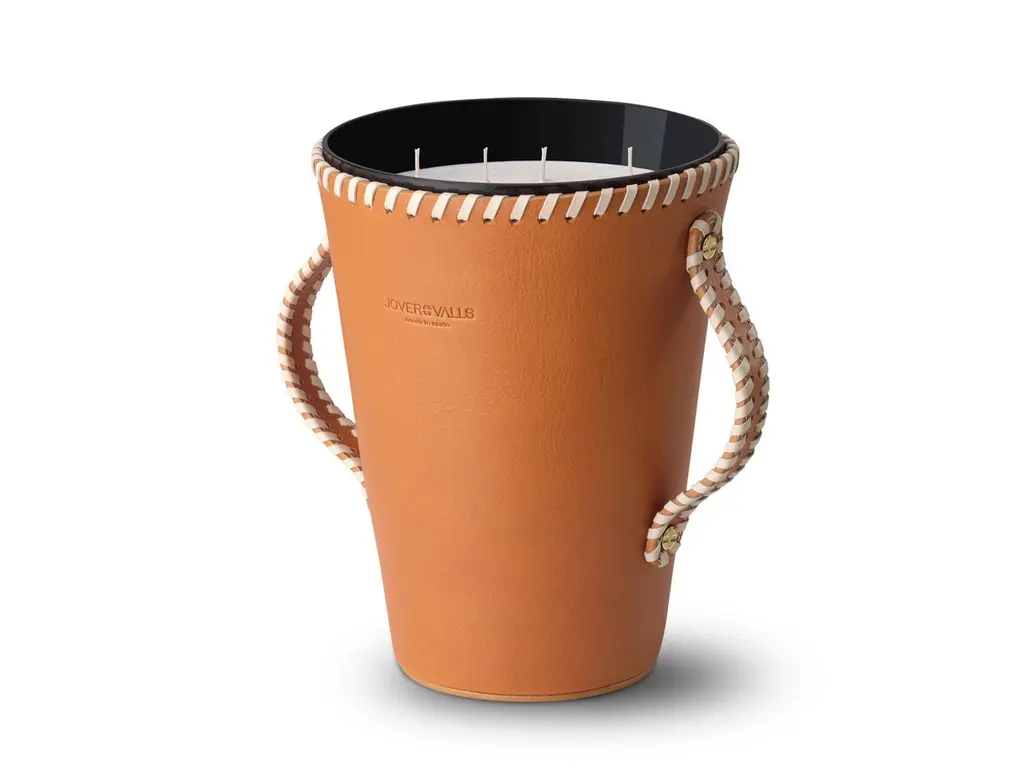 We introduce our leather candleholder’s collection designed at our atelier, hand-made by leather artisans using top grade European cowhides that become sub-product from food industry, vegetable tanned using waxes, tree barks and natural pigments for dyeing. Slightly diverse markings that may occur, show the seal of the craftsman manufacturing. Our leathers pass over a tumbled process that praises the natural grain pattern and does not have a uniform grain structure, the grain structure of skins varies and skins within the same production batch differ from one to the other. Our scented bespoke candle collection is hand-poured in Spain, following a centennial artisan formula that combines smoke-free vegetable waxes, cotton wick and genuine aromas, on a hand-blown glass case, obtaining a sustainable and one-of-a-kind product. Our candleholders and candles are presented as a decorative home accessory, choose the ideal combination for your spaces, available in 2 different sizes, 3 designs, 5 leather main colors and 4 aromas. A combination of highly scented and refined artistic craftsmanship to make the perfect decorative piece to adorn any space.Sizes:123 oz. / 7.7 lb. (3500 gr.). Burning time 200 hours. 4 cotton wicks. 8"x10,5" (20x27 cm.)Designs:JARR – BUCKET – BASKETMain leather colors:Natural Tobacco – Cognac – Dark Brown – Navy Blue – BlackAromas:WANDERLUSTFresh spices, Saddle & CedarFragrance Family: Green & SpicyScent Type: Natural & AromaticFragrance Notes: Top: Cedarleaf oil, Pinus Sylvestris, Fresh Tobacco Leaf Heart: Nutmeg, Black Peper, Waxed Leather, Wild Thyme Base: Patchouli, VanillaFragrance description: Is a mindful journey where senses are fully open to stimulating and natural fragrances, familiar perfume with a fresh lavish accent.How to Use:DO’sTo be displayed and enjoyed at home, indoor use only. For the first time you use your scented candle, let it burn for two hours until all the wax on the surface becomes liquid, doing this will prevent the wax from tunneling down around the wick and for an ulterior clean burn. Should black smoke appear, trim the wick regularly with a wick trimmer no longer than 1/4" (6mm). When lit, place on a heat resistant mat. When extinguishing the candle, check the wick is upright and centered, this will ensure the candle burns evenly right to the bottom of the glass. Burn the candle between 30 minutes and 2 hours for perfect burning. Allow to solidify before relighting. May produce an allergic reaction.DONT’sBurn within sight, never leave a burning candle unattended. Keep out of reach of children and pets. Keep away from combustibles. Do not burn near draughts and do not move candle when lit. Do not burn down to the bottom, or on or near anything that can catch fire. Do not ingest.