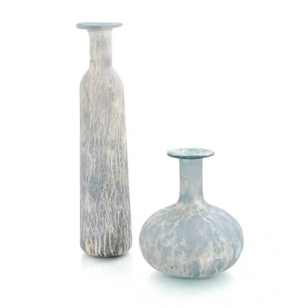 Stelo candle holdersCaptivating hues of bold visual impact make these two candle holders one-off pieces of unprecedented artistic charm. Defined by exquisite shades of blue and patchwork of radiating cracks of unique character, both pieces are superbly handcrafted of ceramic following the Raku firing technique from the Japanese ceramic tradition.Diameter (cm) 6,5 x H 17Diameter (cm) 7 x 17.5Handmade in Italy.Customisation available.