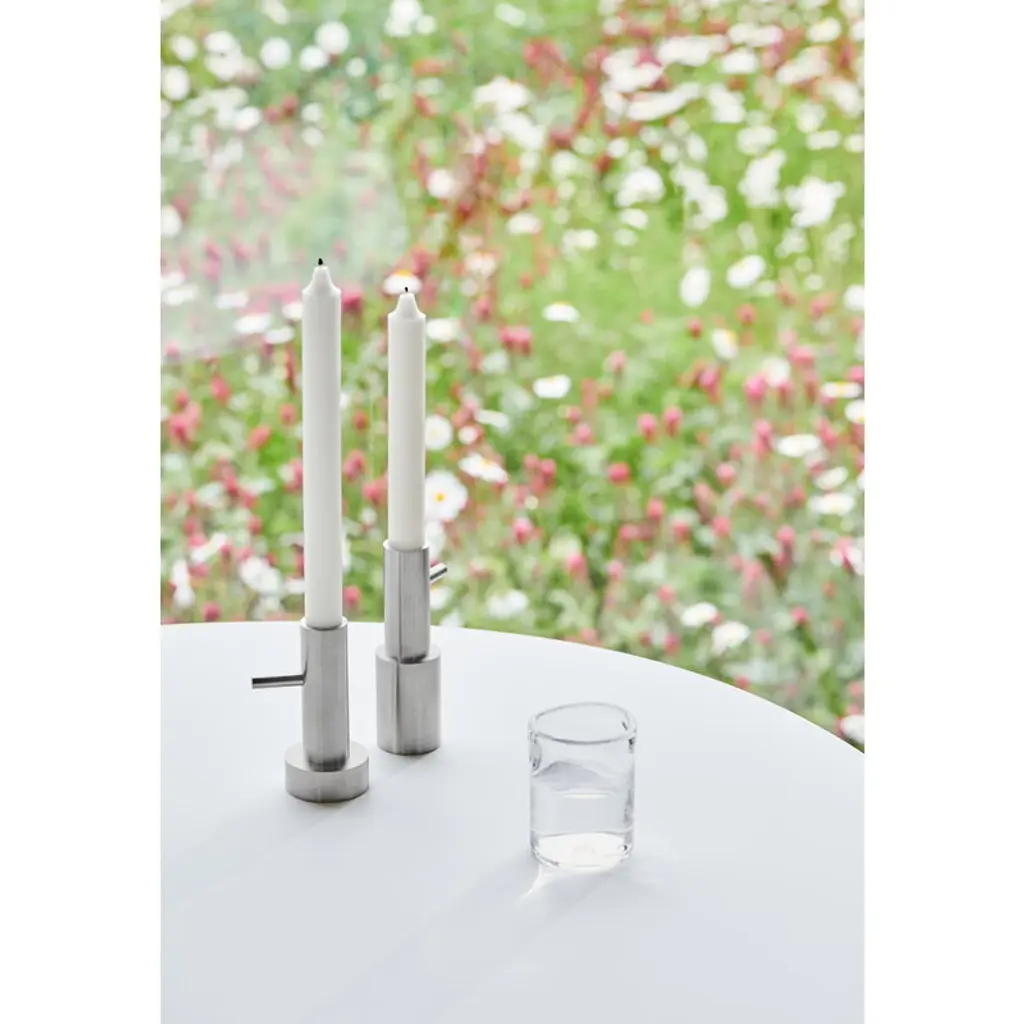 Jaime Hayón's candleholders, designed for Fritz Hansen, leave room for your own interpretation of the design. The candleholders can be seen as just sculptural, beautifully minimalist decorative objects that charm you with their simple forms in stainless steel. However, true to the designer’s signature style, you could also see them as whimsical characters with pointy noses! The candleholders look wonderful as such, but you could also create various combinations, or families, if you will, by placing several of them side by side.