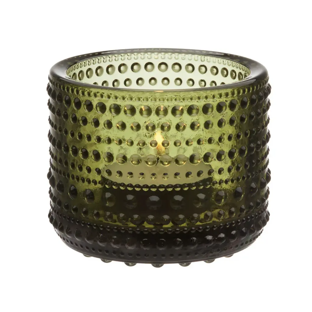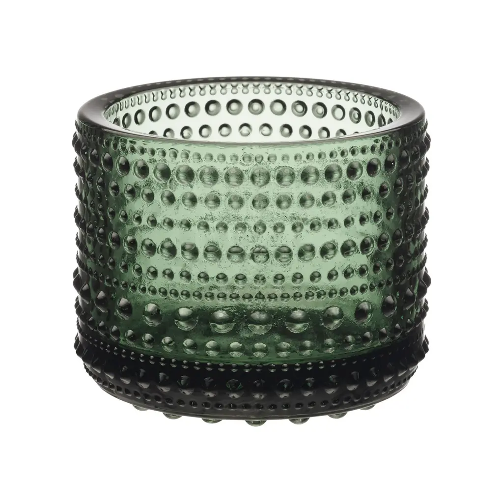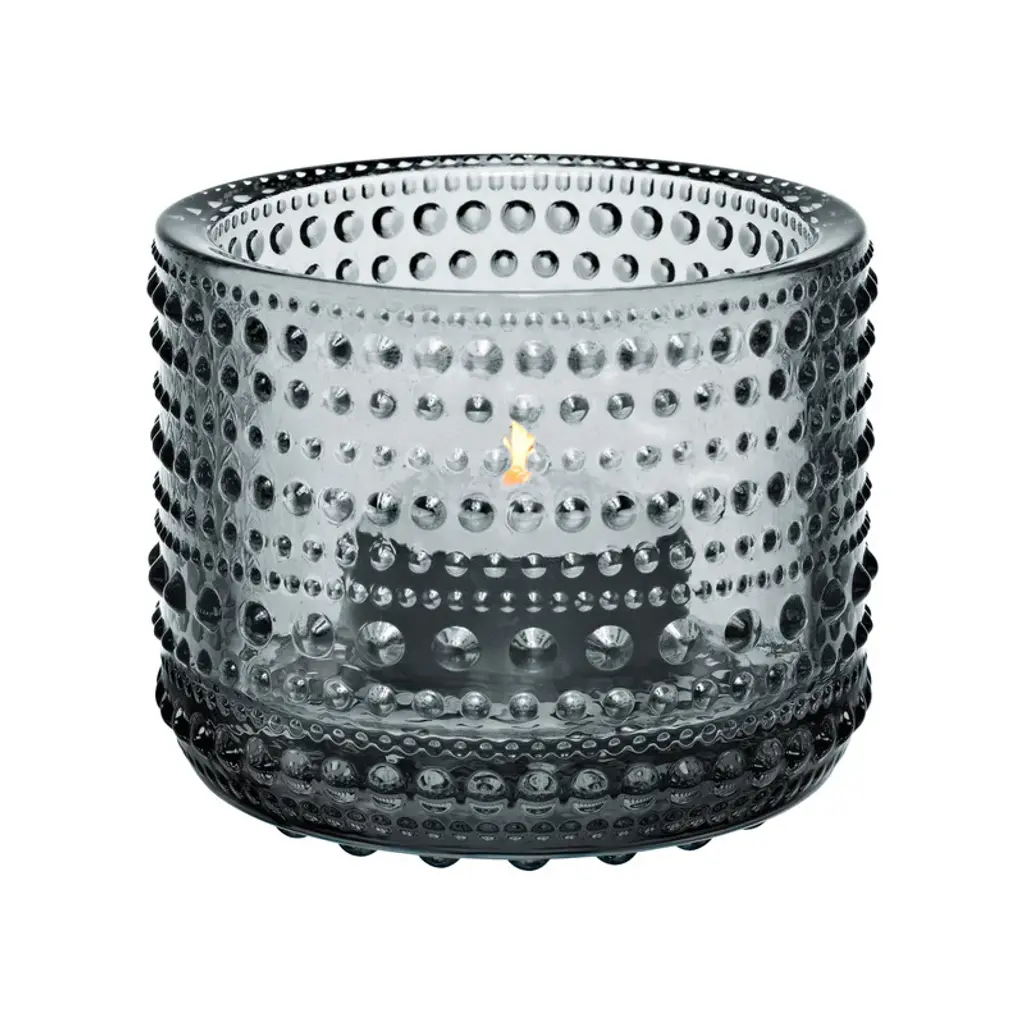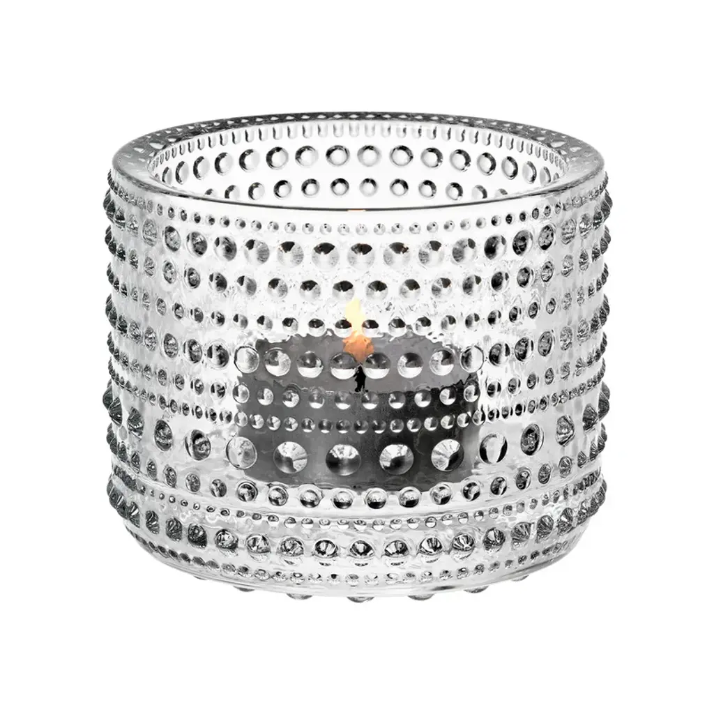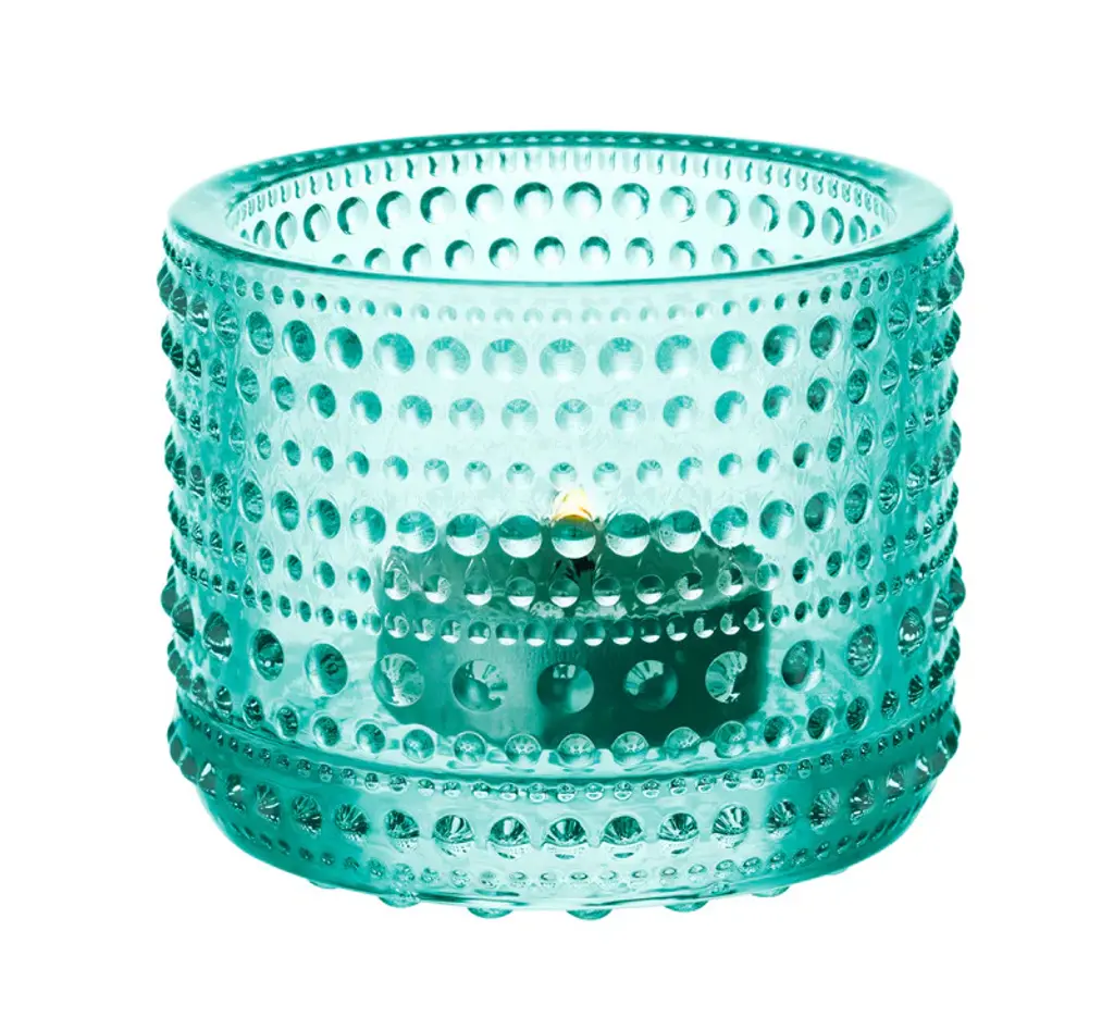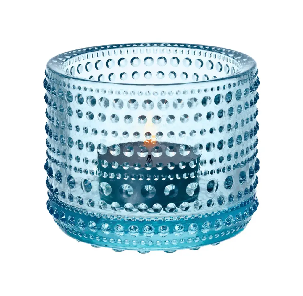 Inspired by morning dew drops, the Kastehelmi Tealight Candleholder from iittala is a creative way to bring the outdoors in. Available in cool, crisp colors, the ornate details are accentuated by the flickering light of a candle, reflecting the beauty of its craftsmanship on the surrounding surfaces, bringing ambiance to your interiors. Highlights