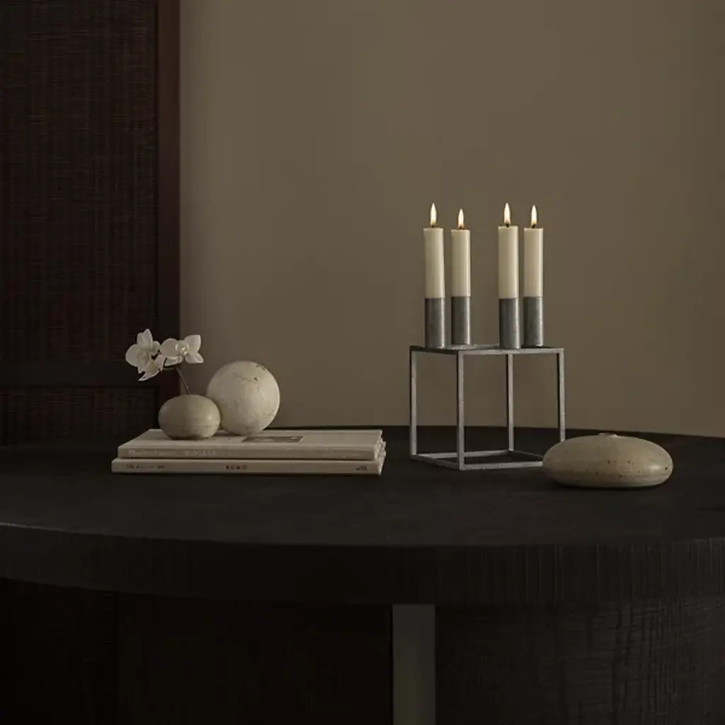 The Kubus 4 Candle Holder from Audo Copenhagen, formerly Menu, designed in 1962 by Mogens Lassen, epitomizes the contemporary Functionalist style. Originally intended only for family and close architect colleagues, this product has become popular worldwide among architects and design enthusiasts. This candle holder is meticulously crafted in Denmark and has become a modern international design icon. Its sharp lines and timeless elegance inspire and captivate, making it a distinguished addition to any decor.