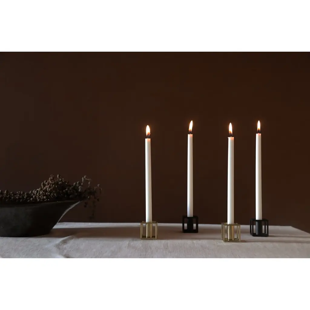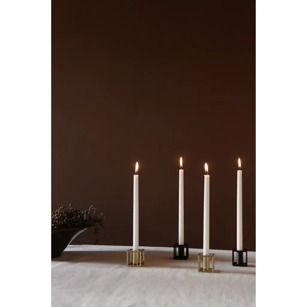 Audo Copenhagen's Kubus Micro is a mini version of the classic Kubus candleholder designed by the Danish architect and designer Mogens Lassen. When creating the original design in 1962, Lassen drew inspiration for it from the Bauhaus movement, which is visible in the beautiful, geometric design of the candleholder. Kubus Micro follows that exact same geometry, yet scaled down to half the size of the classic Kubus 1 candleholder. The package includes two gold-plated candleholders.