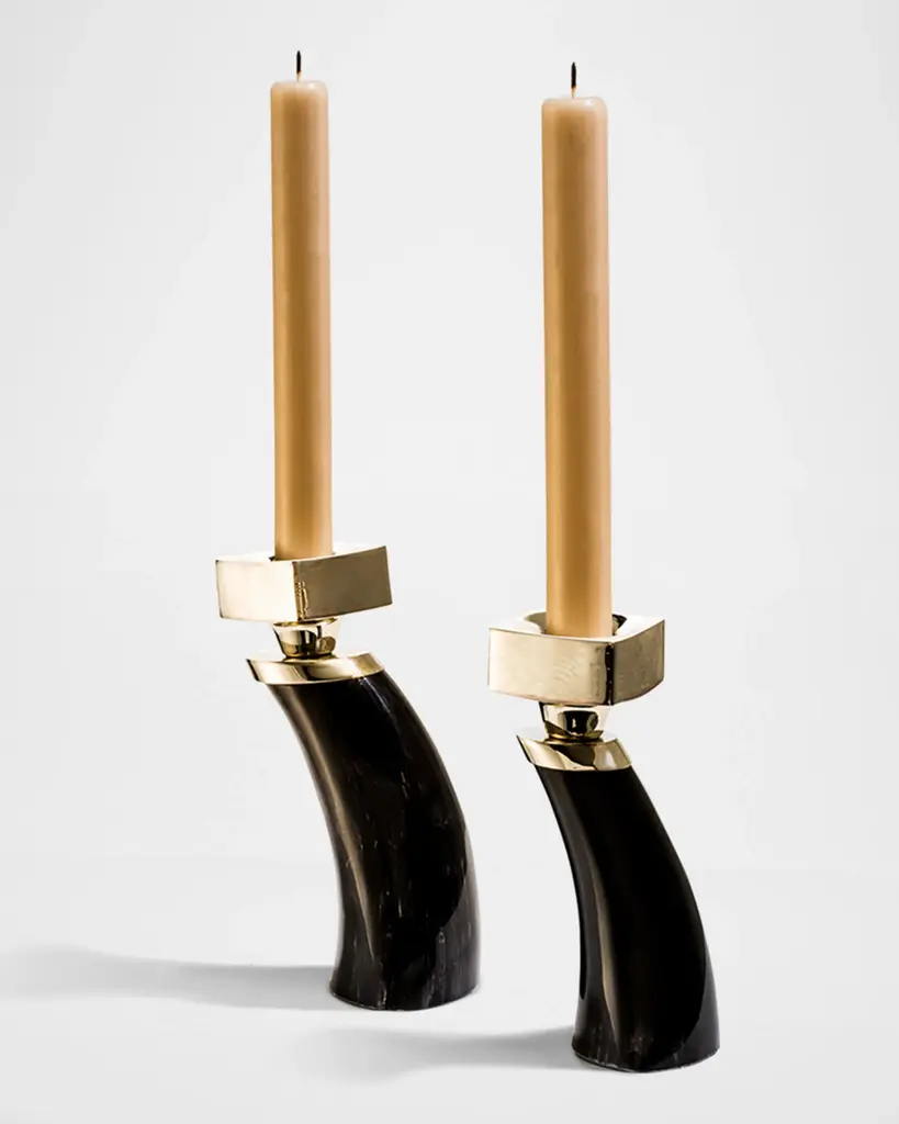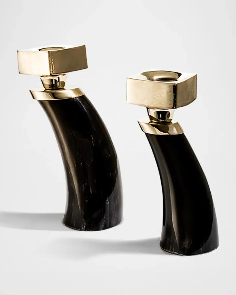 Ladorada Dark Bull Horn Candlestick Holders, Set Of 2 | Horchow