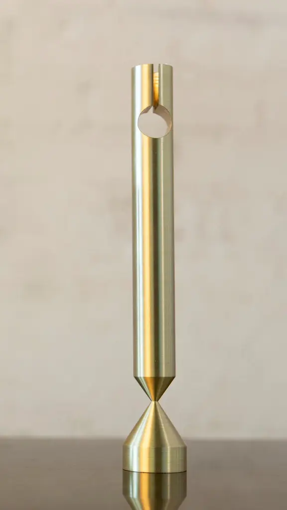 Large Pillar brass candlestick by Gentner DesignDimensions: D 3.8 x H 21.7 cmMaterials: brush raw brassAvailable in brush raw brass and darkened brass.Available in small, medium and large.Gentner DesignRooted in a language of sculpture, character defining details, and world renowned craftsmanship, the work is found at the crossroads of design and art.Established in 2011, the namesake furniture label is a rare combination of aesthetic dexterity and mastery of Craft resulting in furniture and objects that are expressive, formal, and transcend materiality.The collection is based in metal and incorporates only natural materials such as leather, wood, and glass in unique ways, challenging our assumptions.Christopher GentnerChristopher Gentner, with a BFA in metalsmithing from the Cleveland Institute of Art and apprenticeships under sculptors and jewelers, together with dedication to Craft, quickly developed his reputation nationally as a foremost authority of metal fabrication and furniture.One of his crowning achievements was the re-creation and fabrication of the Frank Lloyd Wright Robie House gates.These unique experiences are the foundation of his design philosophy which he employs in his own line of furniture, lighting, and objects.