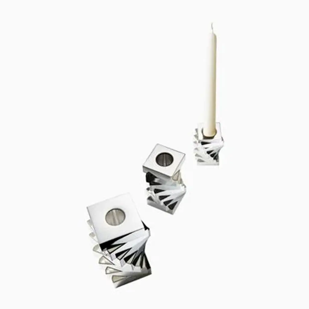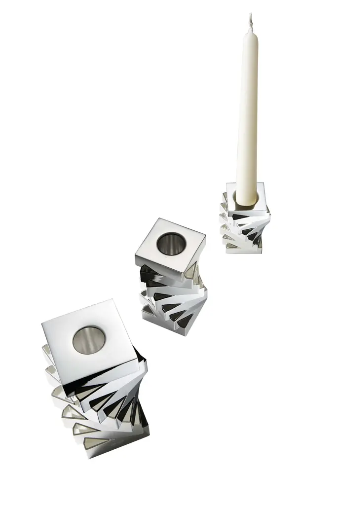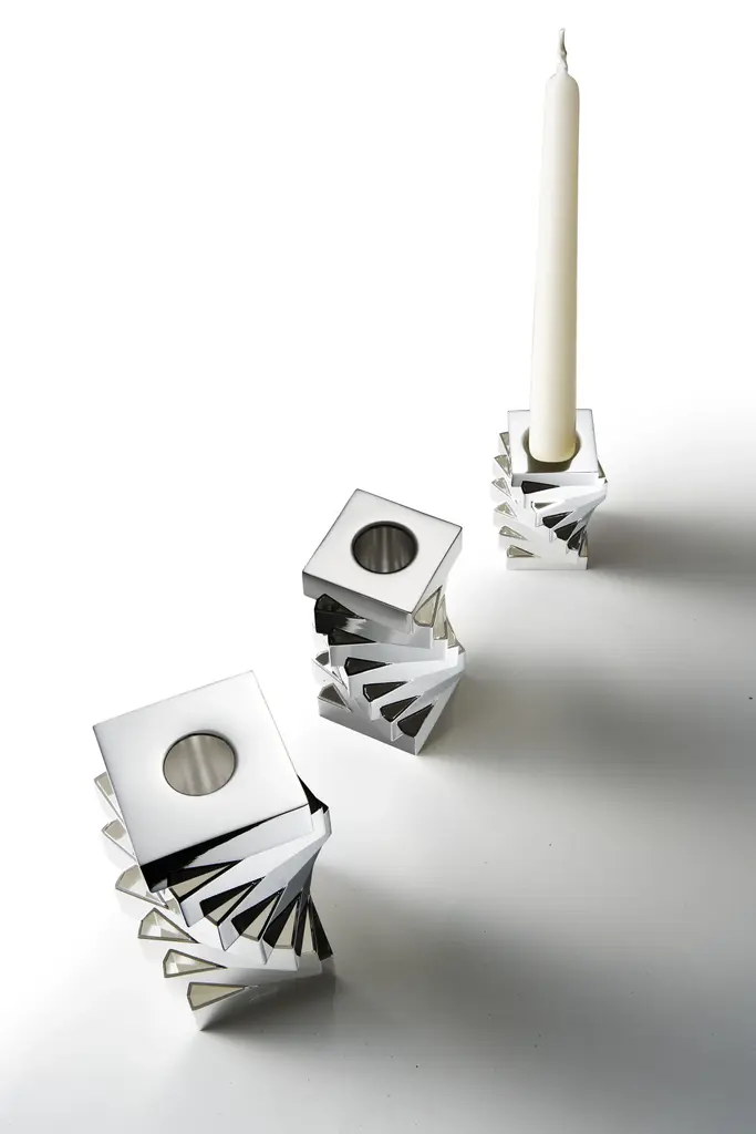 This Vortice candleholder is made of smooth glossy silver alloy.