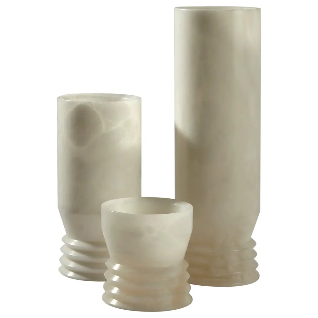 A set of two organic minimalist alabaster candleholders.