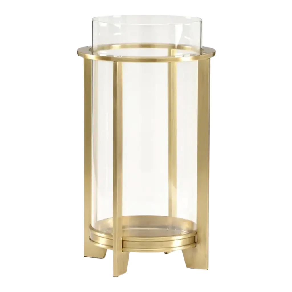 A set of three crystal and antique brass candleholders.