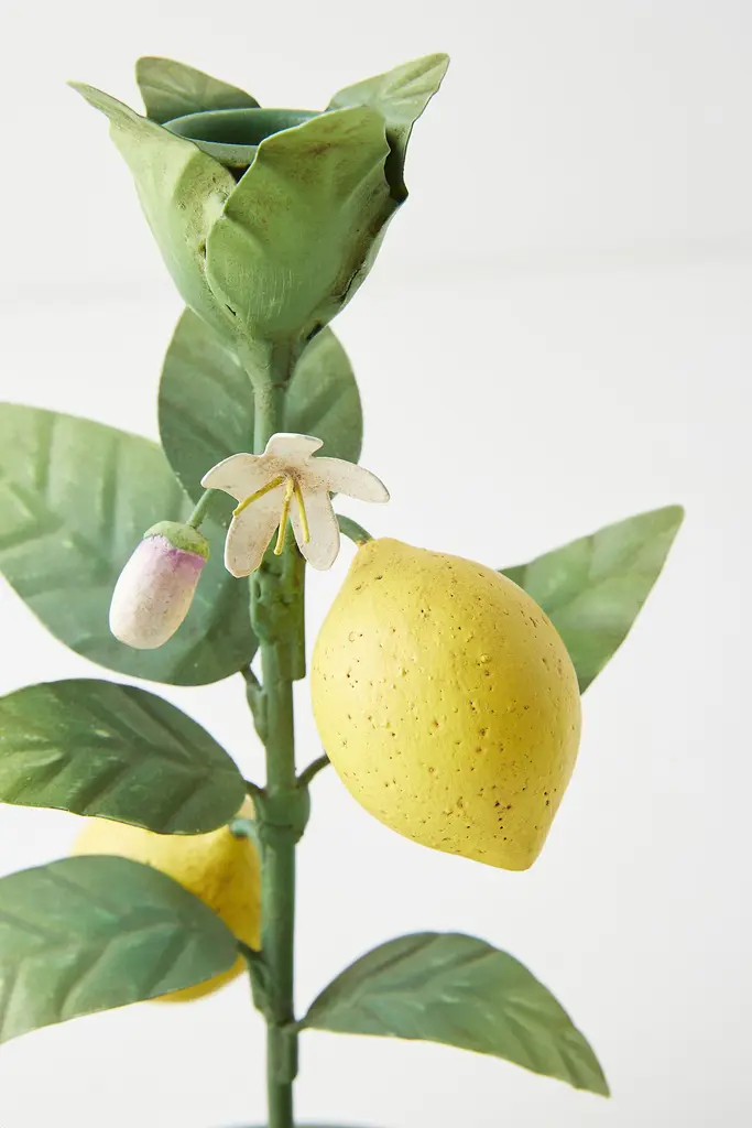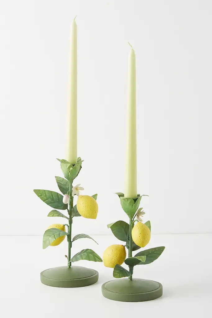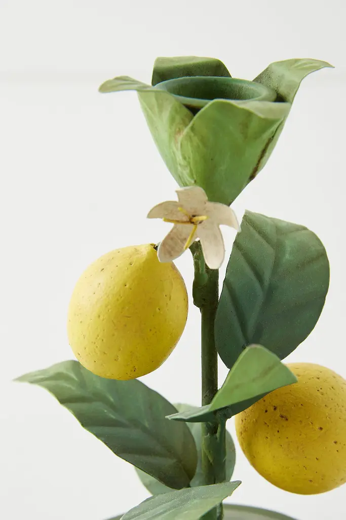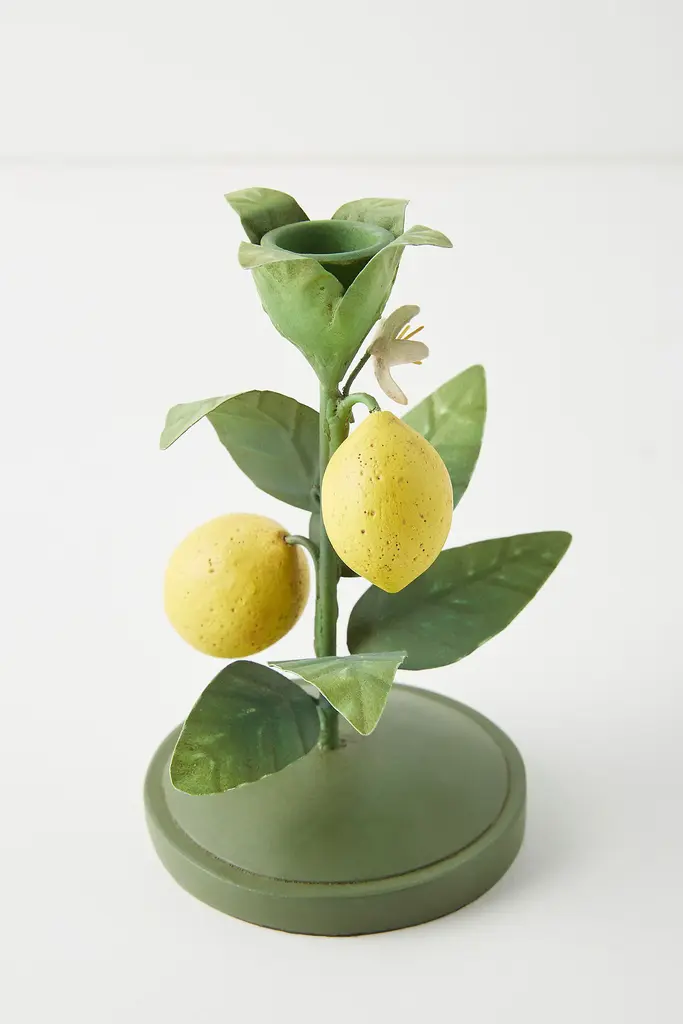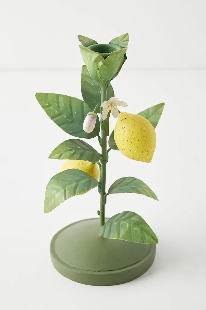 Crafted in the shape of a blossoming lemon tree, this taper holder adds a fresh touch to your decor.